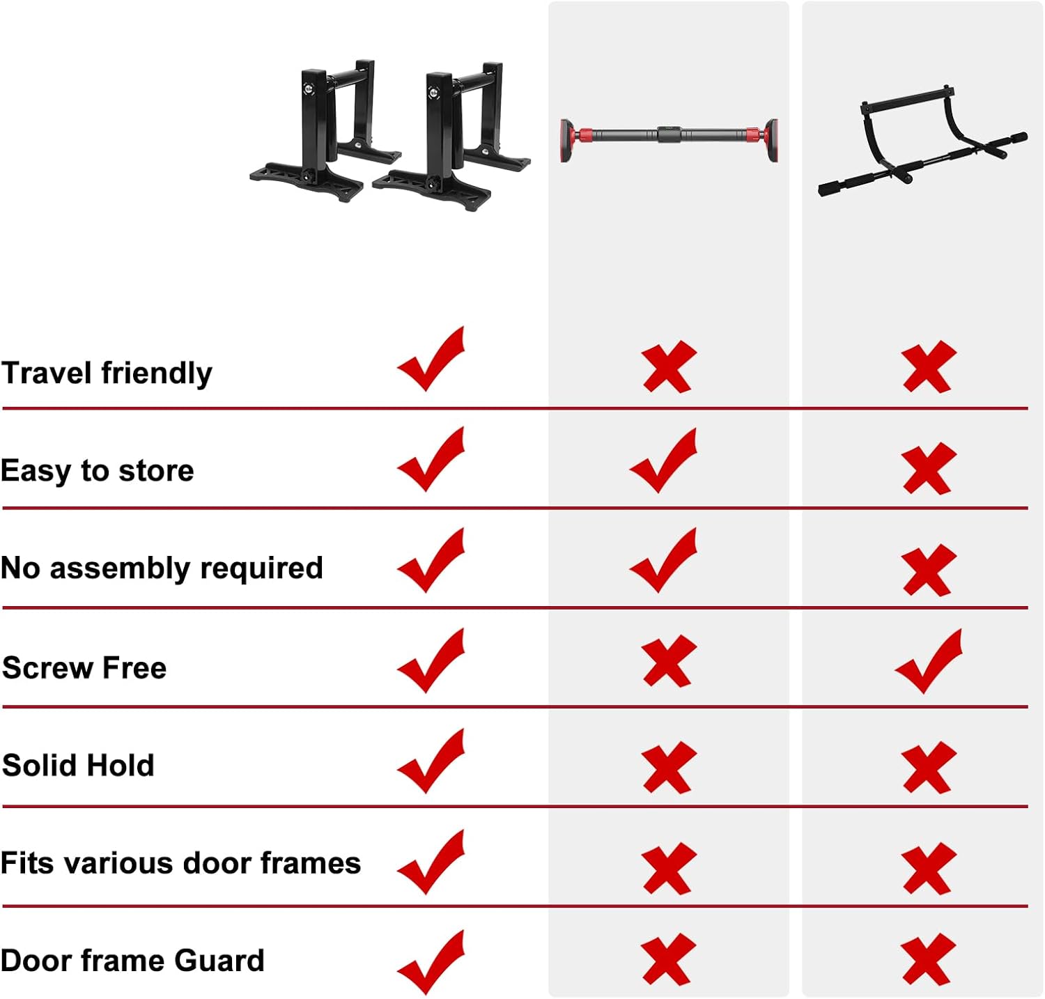Instant Setup, No Tools Needed: Ready to use in seconds – no screws, no assembly. Easily mounts on most standard door frames for immediate home gym action