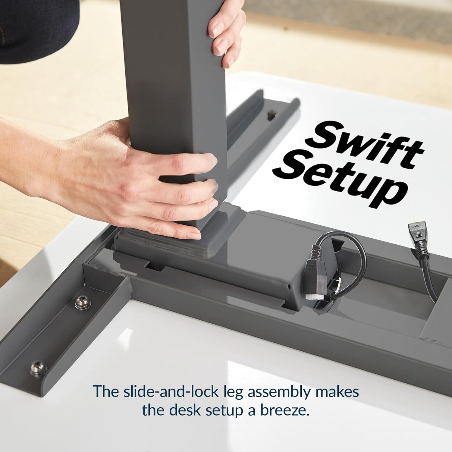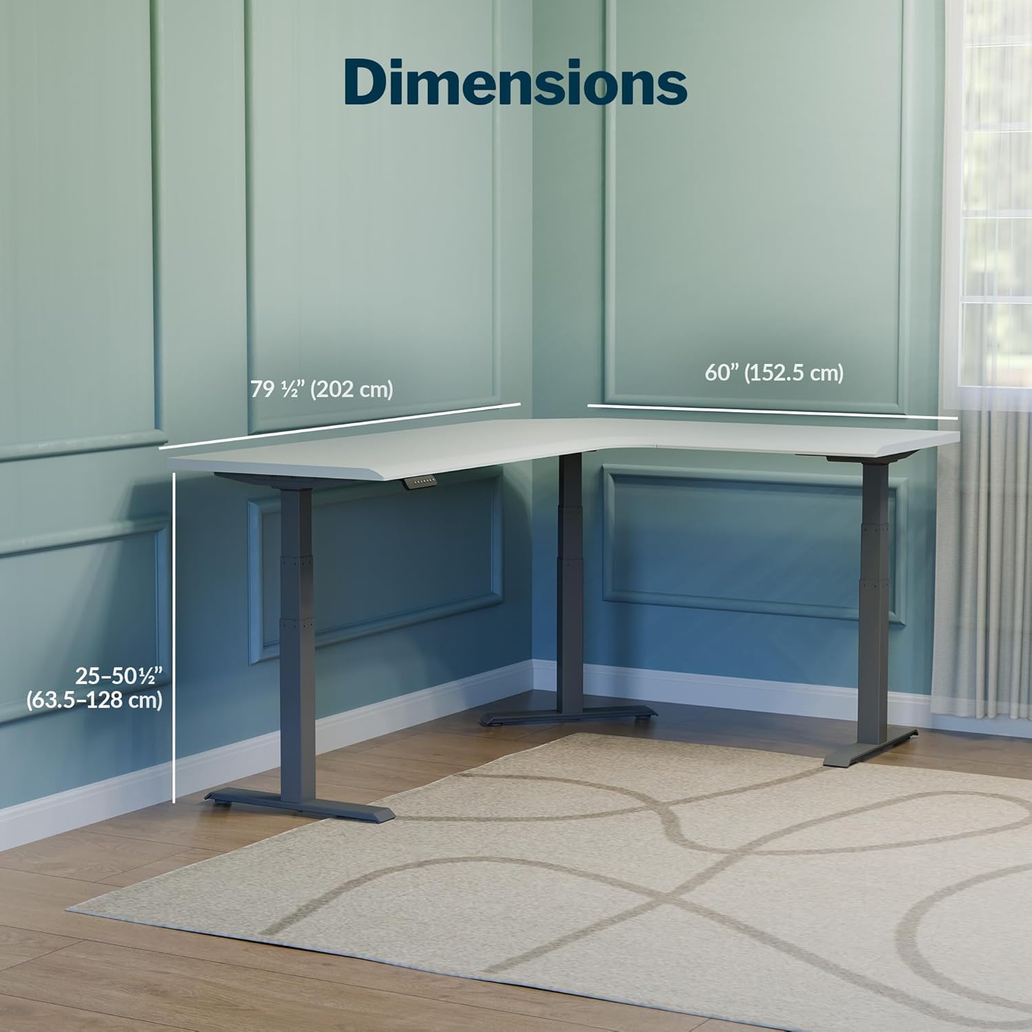Vari ComfortEdge 80×60 L-Shape Electric Standing Desk – Height Adjustable Sit-Stand VariDesk for Corner Office with Reversible Left/Right Design + White Laminate Top/Slate Legs (Ships in 3 Boxes)