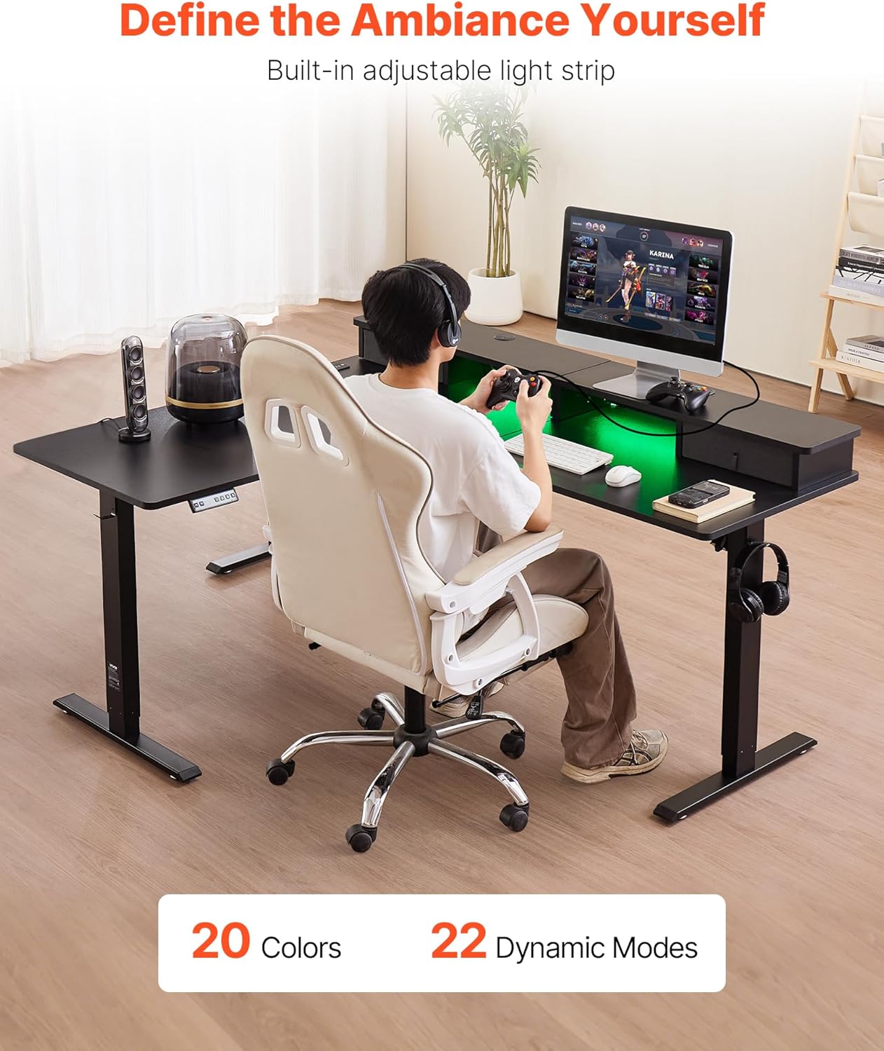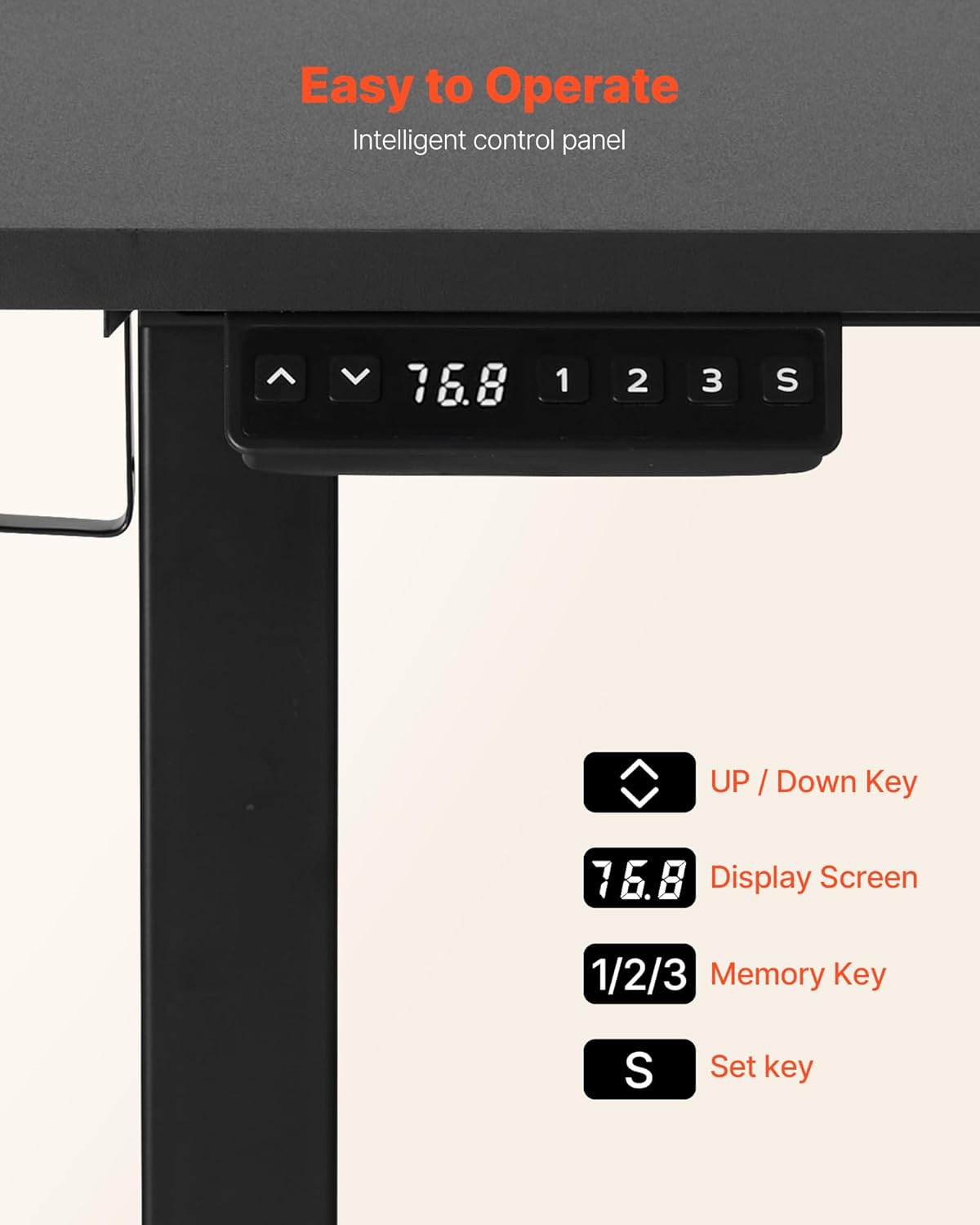 Powerful Motors & Smart Panel: The L-shaped standing desk is equipped with dual powerful motors for smooth height adjustment at a speed of 0.49 in/s / 12.4 mm/s. The memory button records your ideal position, allowing you to easily switch from your ideal sitting posture to standing with one touch