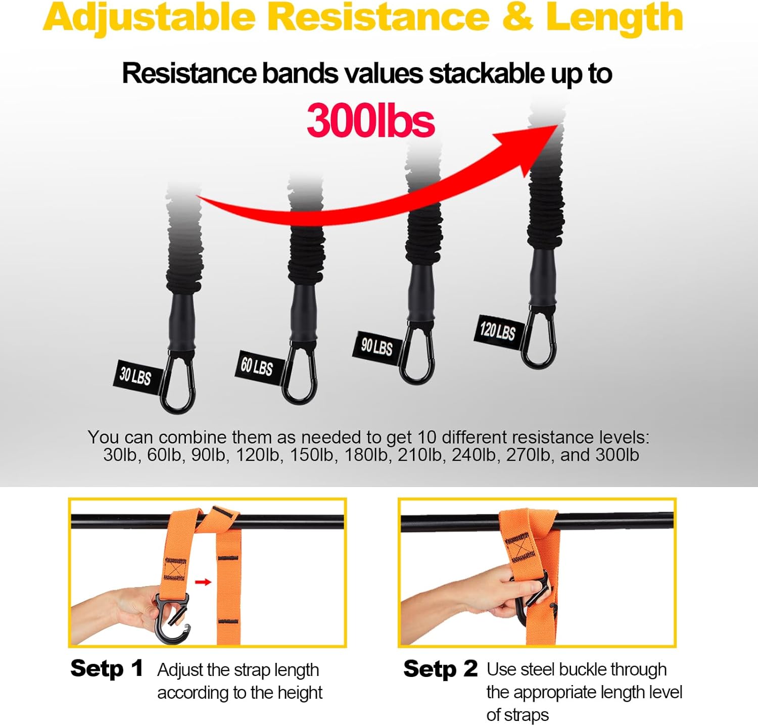【Multi-Level Progressive Training】 Gentle support for beginners and challenging options for advanced users. This set of pull up assistance bands includes 4 resistance levels: 30lb, 60lb, 90lb, and 120lb. The bands can be used individually or combined, helping you gradually reduce support and build strength step by step. (When combined, they offer up to 10 resistance levels: 30lb, 60lb, 90lb, 120lb, 150lb, 180lb, 210lb, 240lb, 270lb, and 300lb.)