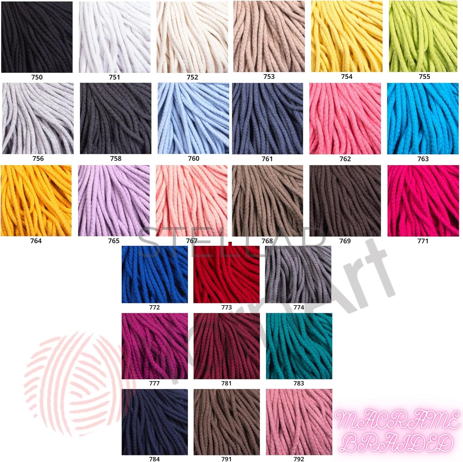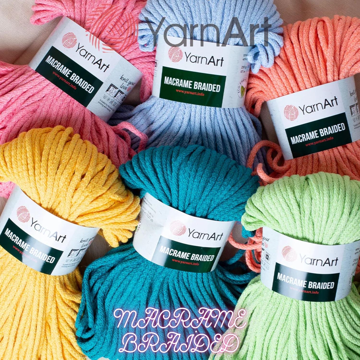 YarnArt Macrame Braided is a high-quality 4 mm soft cord crafted from a blend of 55% cotton and 45% polyester, designed for both durability and comfort. Its unique braided structure gives your handmade items a professional and polished look while remaining lightweight and easy to handle. Whether you’re making wall hangings, rugs, bags, or stylish home accessories like table runners and cushion covers, this macrame cord provides endless creative possibilities. The skeins come in a generous size of 250 grams with a length of 67 meters (approx. 73 yards), allowing you to complete large projects with fewer joins. Choose from a wide palette of vibrant and pastel colors to express your creativity in bold or subtle tones. Perfect for DIY lovers, macrame artists, and handmade gift creators alike.