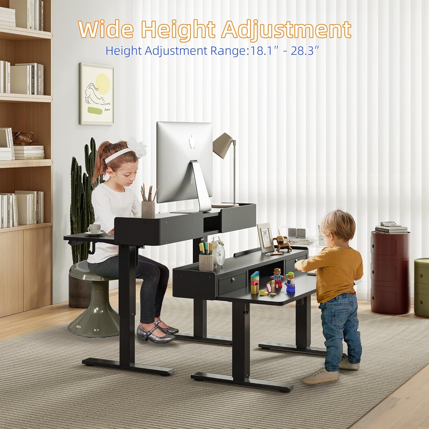 YIHAYO Low Height Adjustable Desk with Drawers, Lifts 18.1-28.3 Inches, Electric Standing Desk with Storage Shelf for Short People, 48 x 24 Inches Table with Splice Board for Home Office, Black