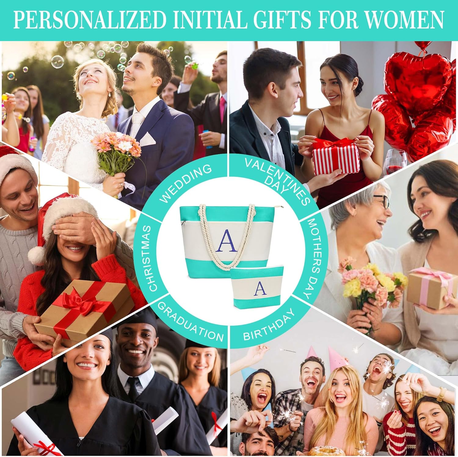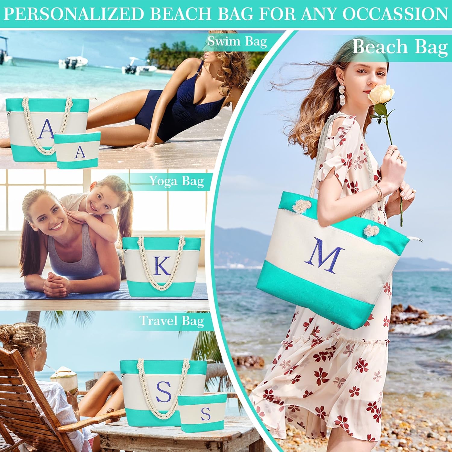YOOLIFE INITIAL TOTE BAG & MAKEUP BAG – PERSONALIZED GIFTS FOR WOMEN TEEN GIRLS