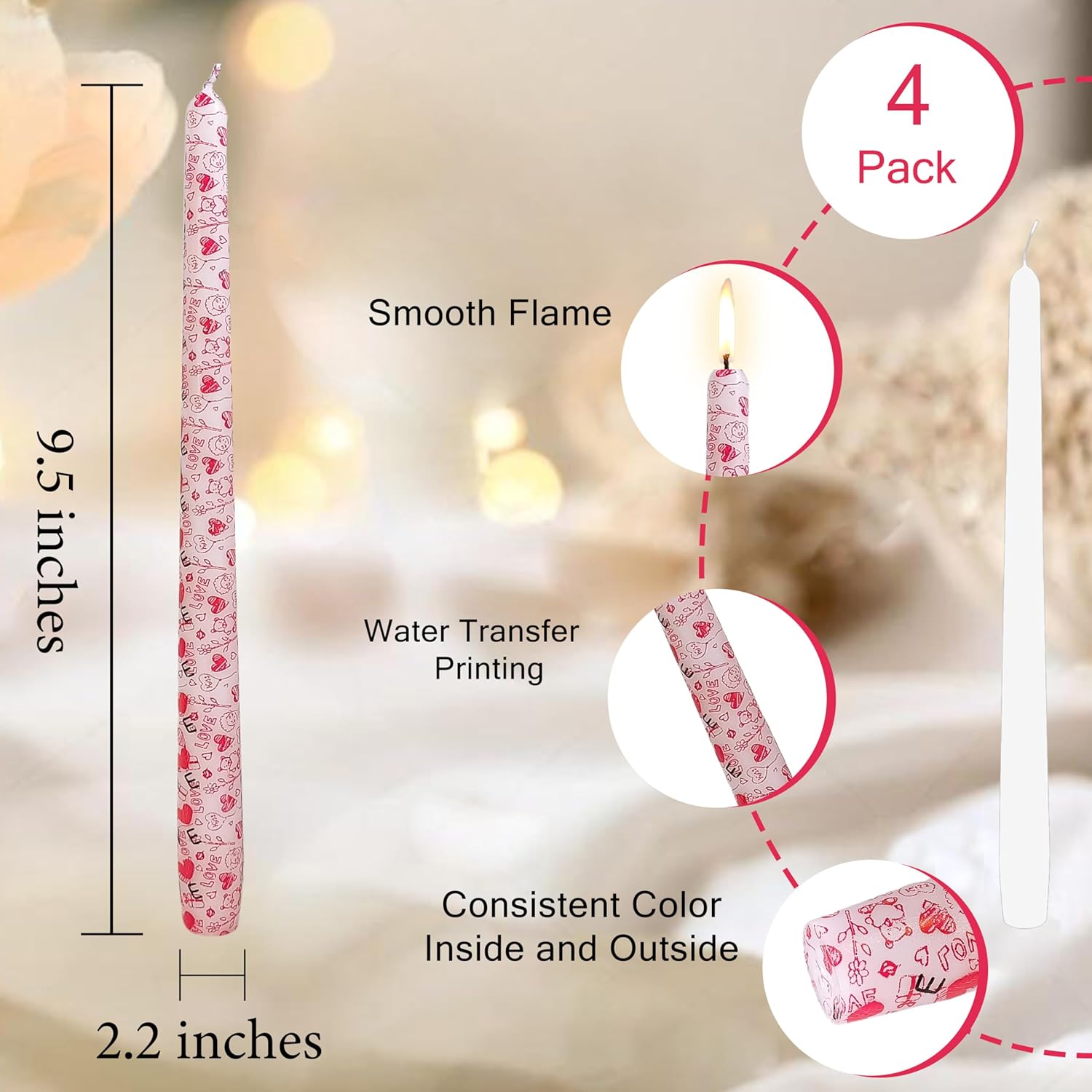 Water Transfer Printed Taper CandlesWedding Centerpiece Perfection4 Pack Hand-Poured Floral Taper CandlesHoliday Table ElegancePhotography Prop Perfection