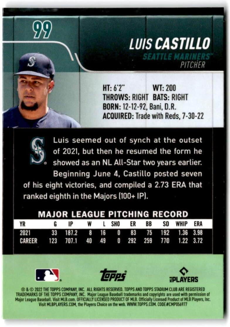 2022 Stadium Club Chrome #99 Luis Castillo Seattle Mariners MLB Baseball Trading Card