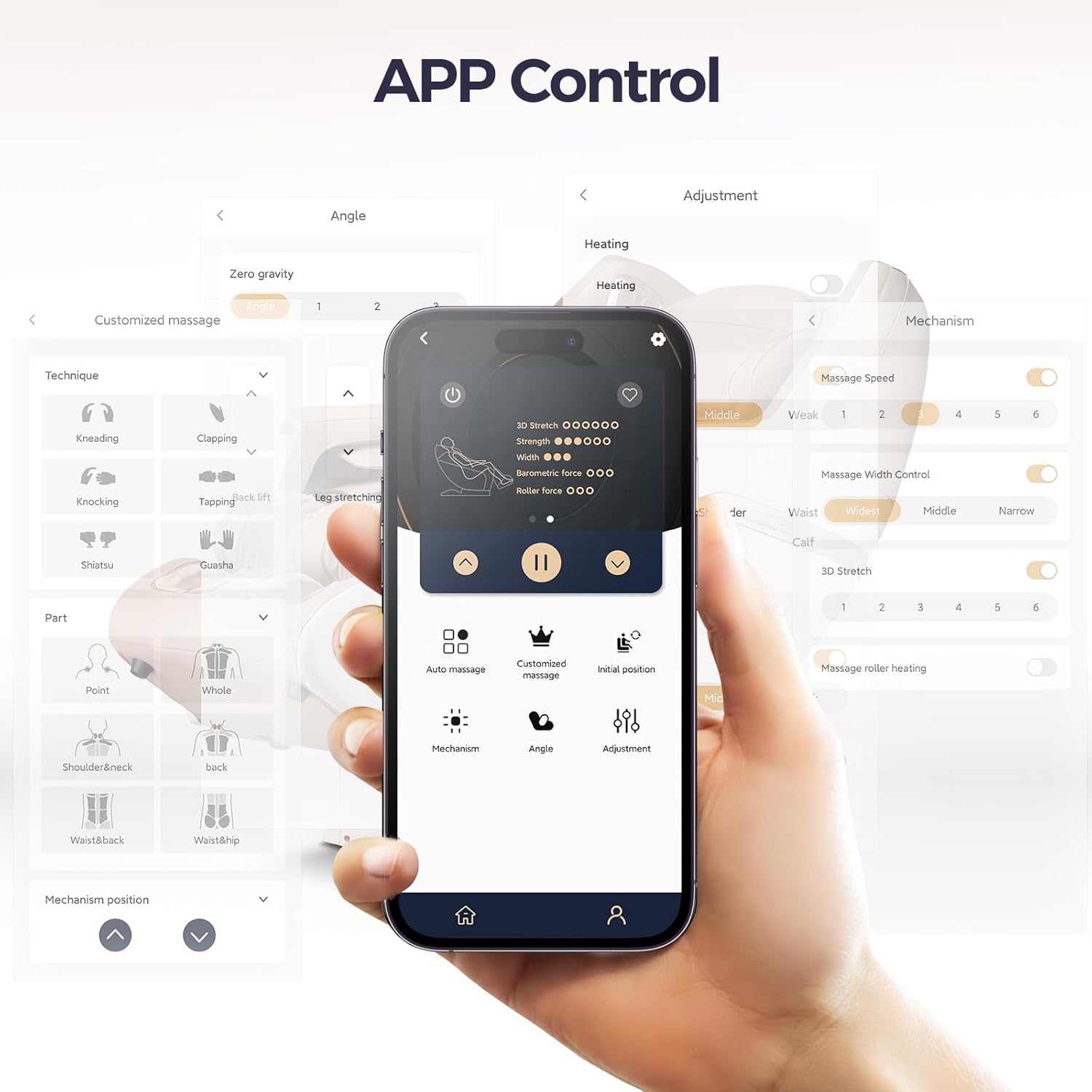 【3D SL Shiatsu Massage 】Enjoy professional-grade relief as 3D rollers glide along the SL-track from neck to upper thighs, delivering deep kneading, tapping, and stretching. Adjustable intensity targets shoulders, lumbar, and hips—perfect for relieving chronic back pain or post-workout soreness.
