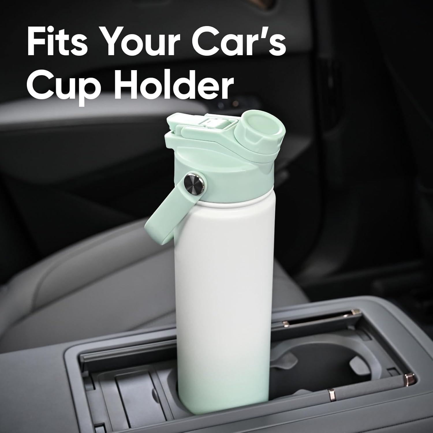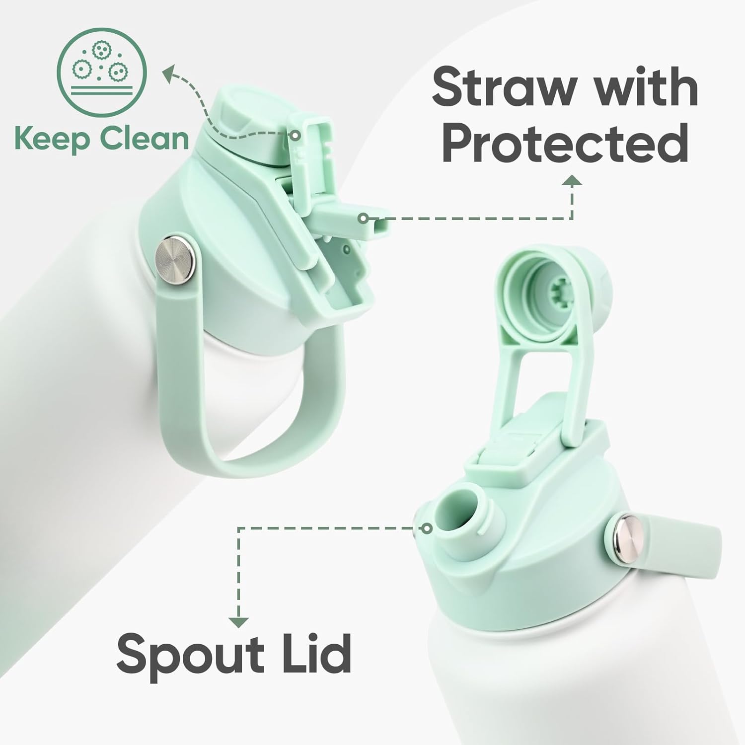 24 oz Insulated Water Bottle, 2-in-1 Lid, Straw & Spout with Protected, Leak Proof, Keep Cold, Stainless Steel, Metal, Reusable, Handle, for Travel, Gym and School, 2 Lids, Iced Mint