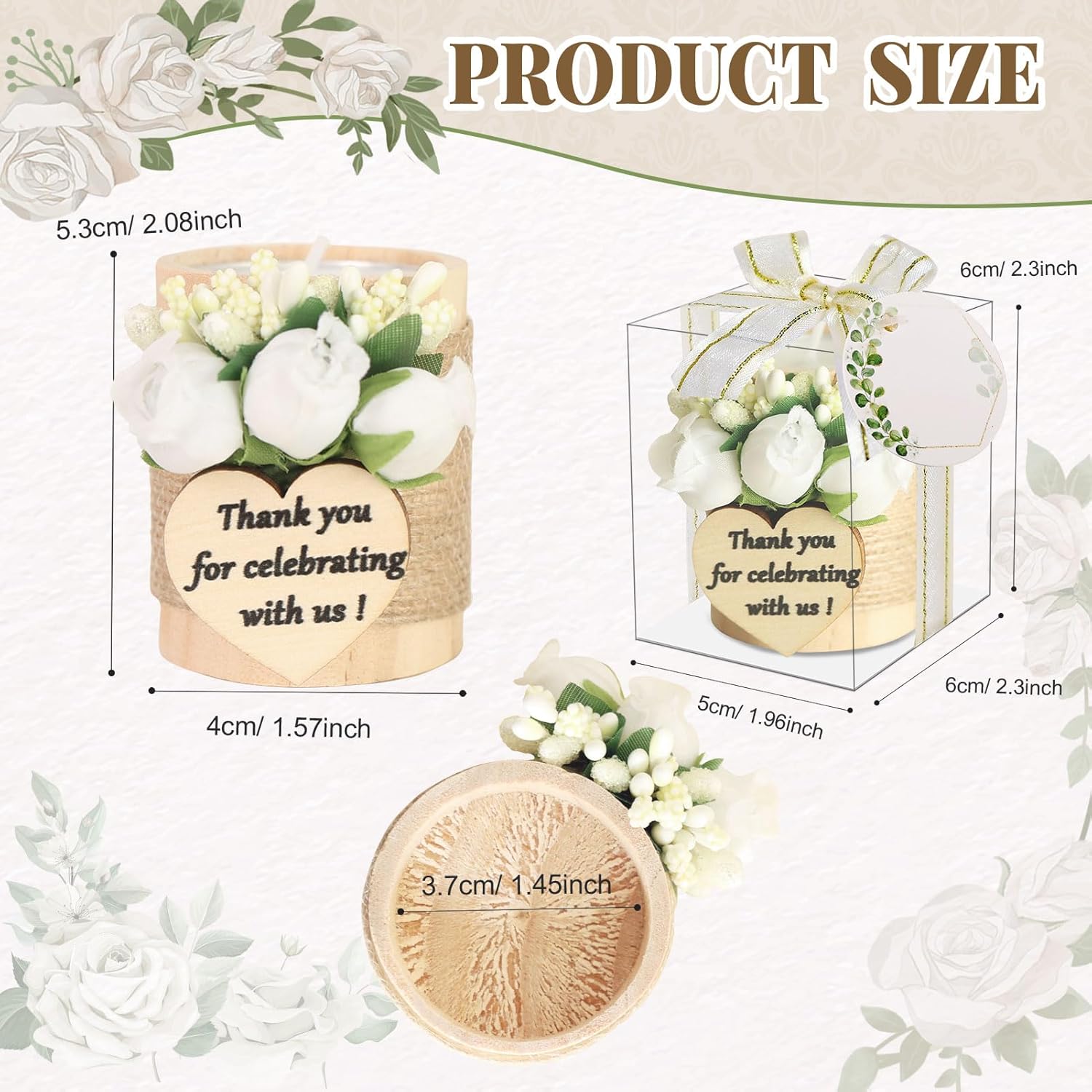 Material: wedding favors candles are made of wood material, smooth surface, sturdy and not easy to break, not only that but also clean and trustworthy tealight holder and exquisite gift box packaging, you can use them for a long time with confidence