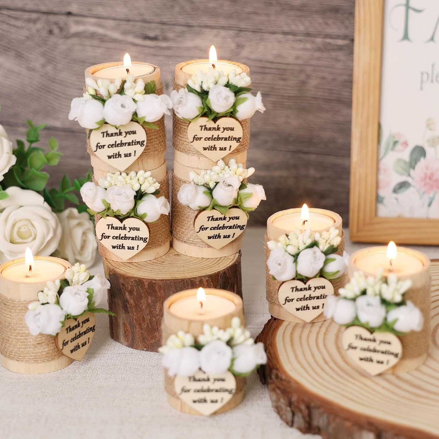 Material: wedding favors candles are made of wood material, smooth surface, sturdy and not easy to break, not only that but also clean and trustworthy tealight holder and exquisite gift box packaging, you can use them for a long time with confidence