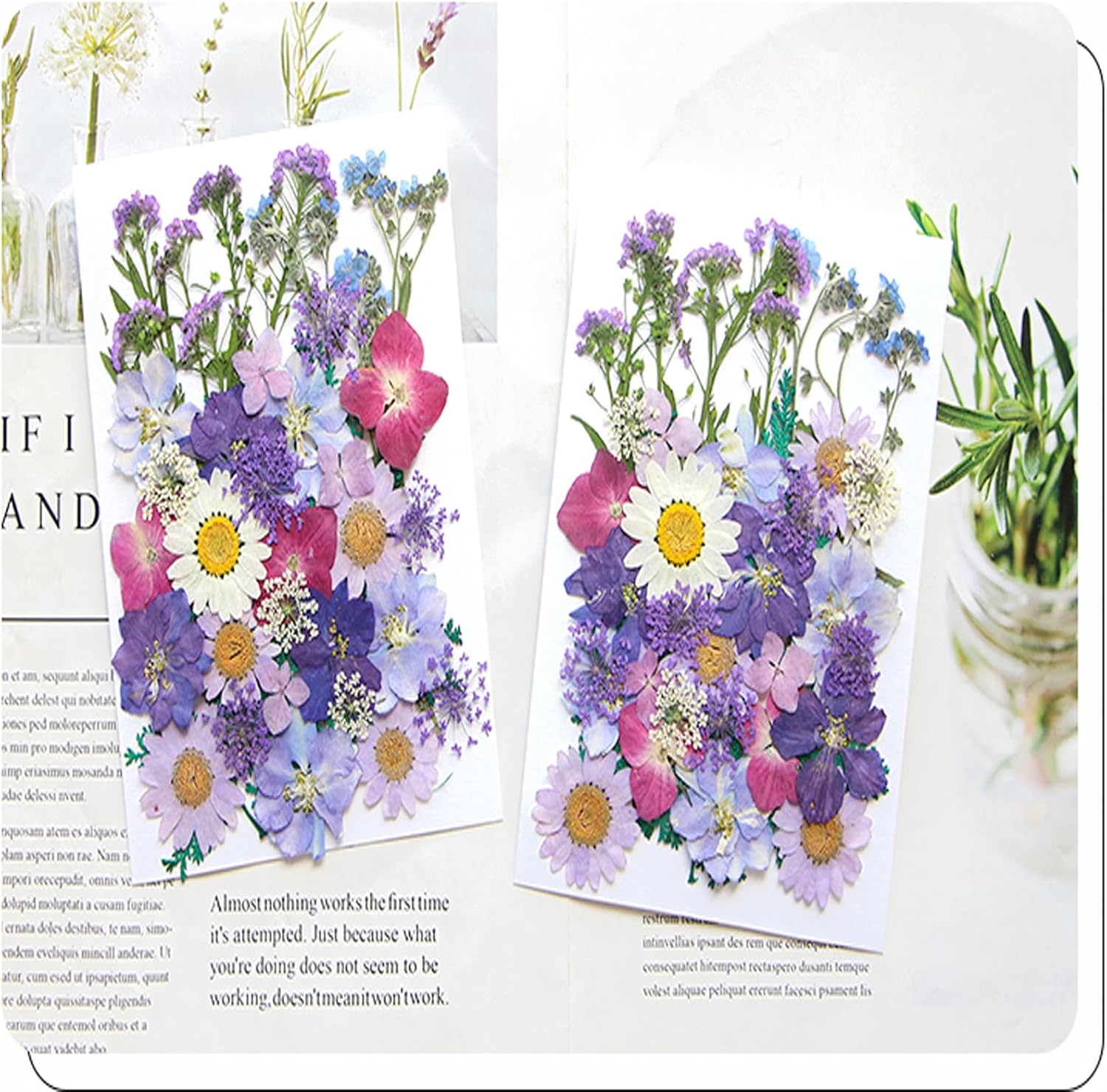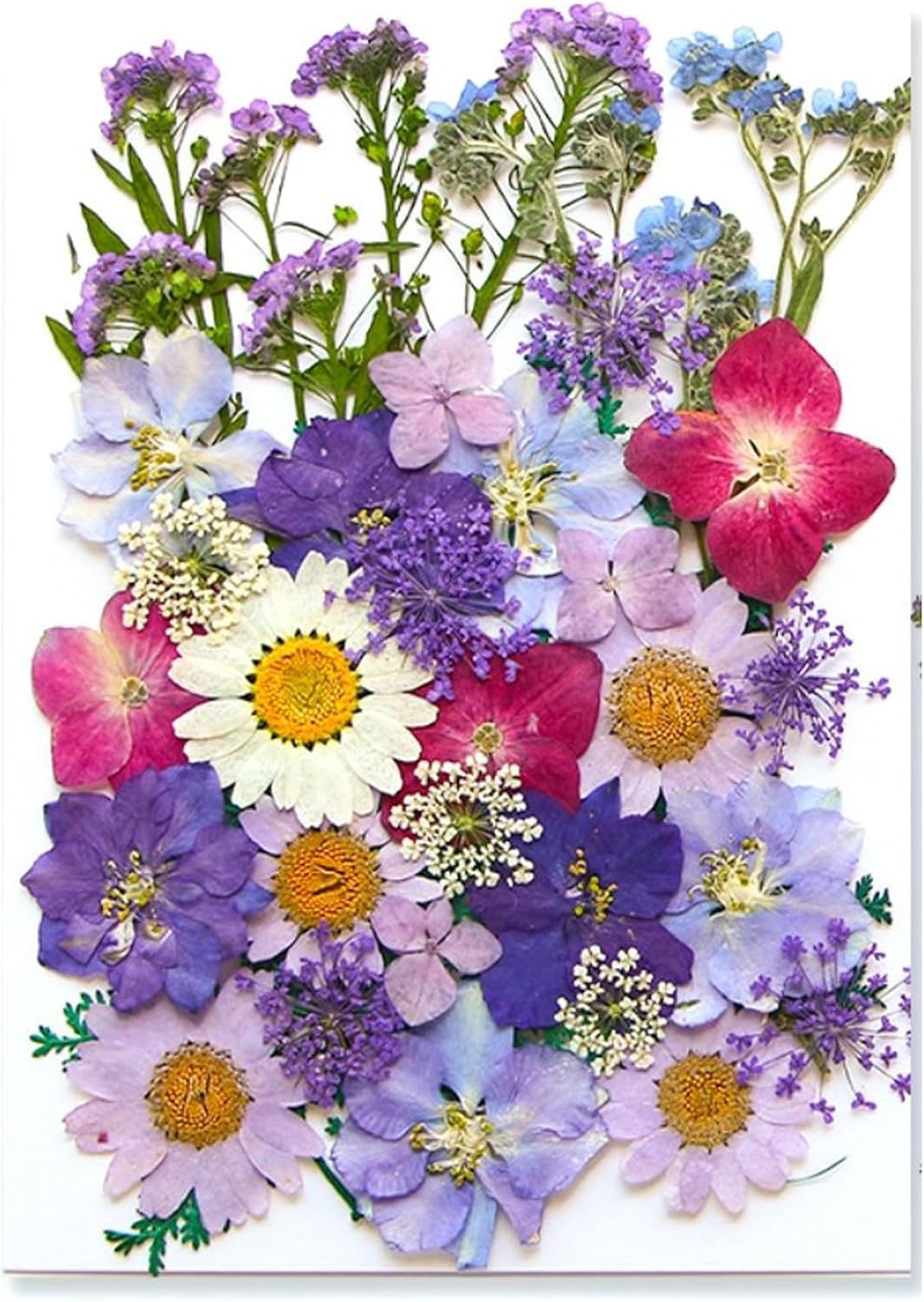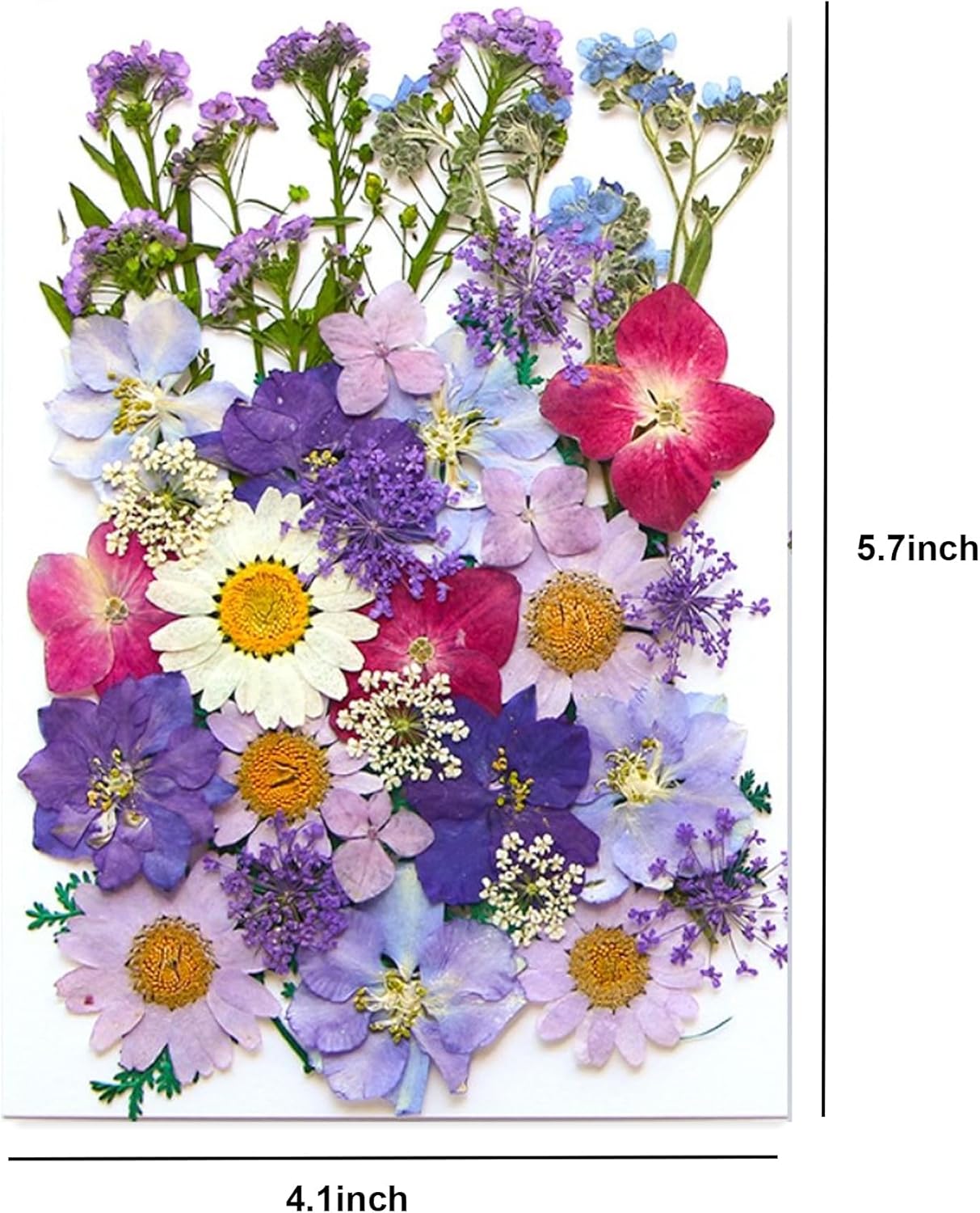 40 Pcs Dried Pressed Flowers for Resin DIY Art Crafts Natural Herbs Dry Plant Leaf Floral Epoxy Jewelry Real Colorful Leaves Flower Decor Cakes Phone Cases Candles Handmade Soap Purple