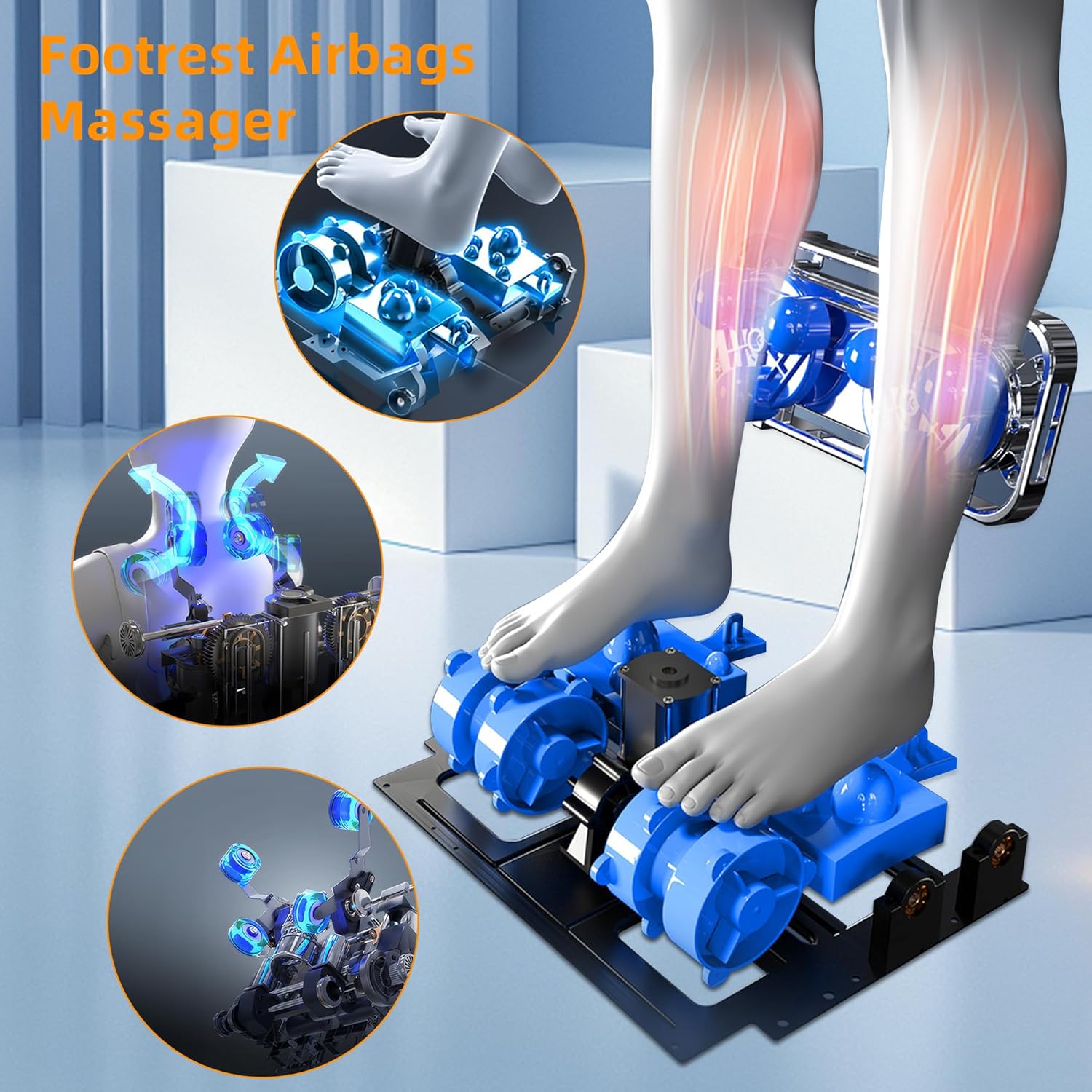 Zero Gravity Recliner with Full Air Compression – Experience weightless relaxation. This chair features multiple zero-gravity recline angles that position your knees above your heart, creating a floating sensation that decompresses your spine and reduces cardiac strain. Full-coverage airbags provide a deep, kneading compression massage across your body for complete immersion.