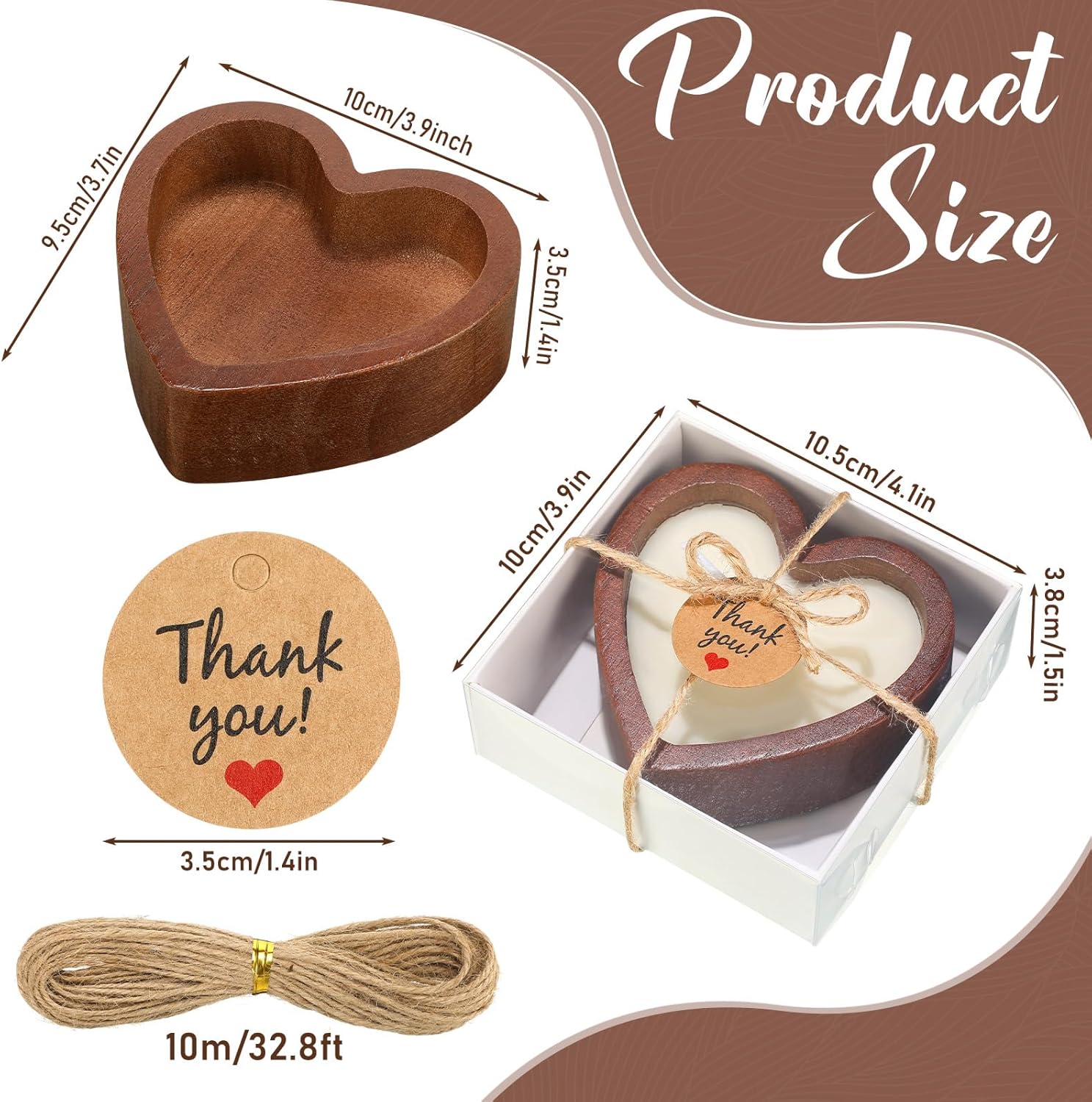 Package Included: This set includes 8 wooden heart shaped dough bowls, 8 design gift boxes, 8 thank you hang tags and 2 ropes, which can be packaged in time after DIY into candle bowls, bringing you complete convenience