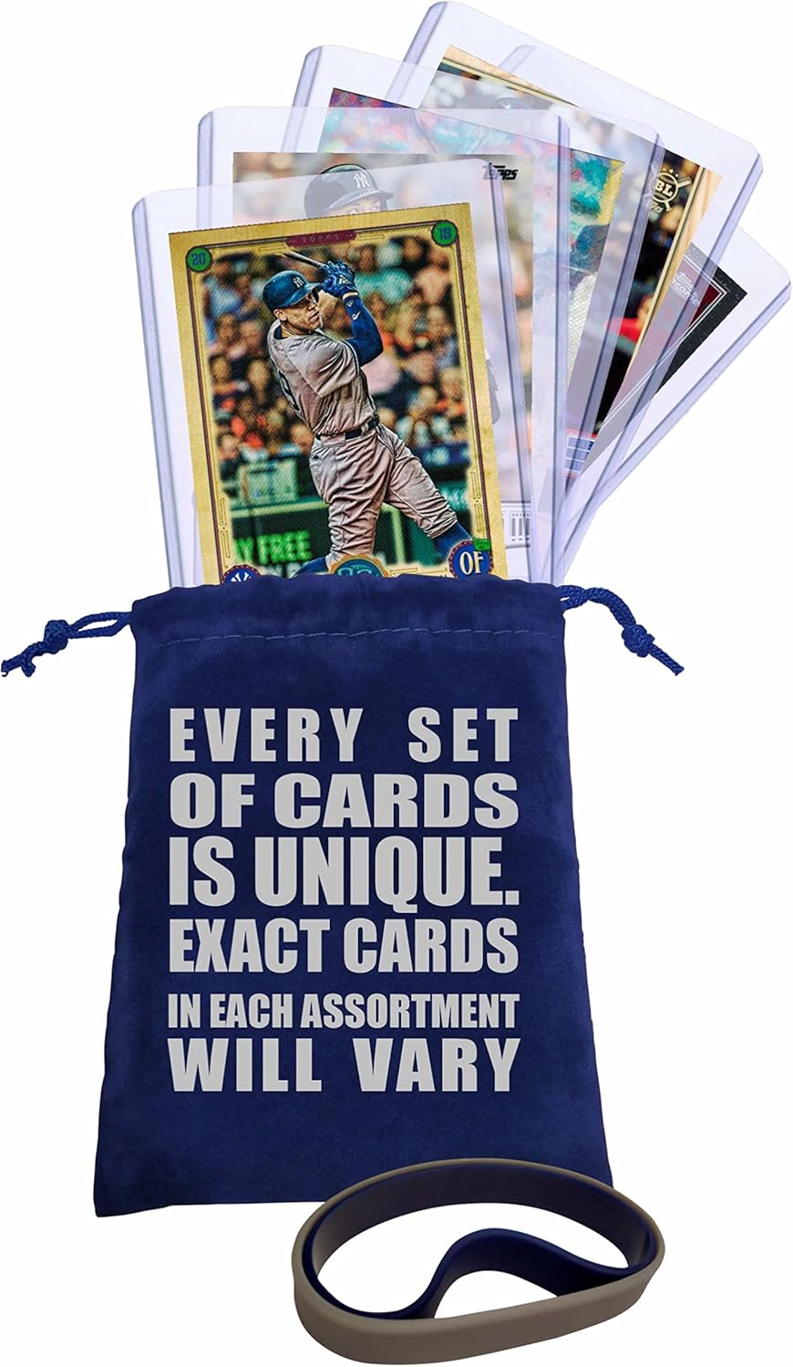 Aaron Judge is one of the top new sluggers in baseball! Crushing Home Runs! This lot of five 2017-2022 Aaron Judge baseball cards makes a great gift and collectors item for any Judge or Yankees fan. All cards are in near mint to mint condition and are shipped with each card in its own individual soft sleeve and top loader or semi-rigid sleeve. Comes with bonus gift bag and two wristbands in team colors, making it the perfect gift for the youth fan. Wristbands are child size. WRISTBANDS AND GIFT BAG INCLUDED ARE UNBRANDED GIFT ITEMS AND DO NOT CONTAIN ANY SANCHEZ, YANKEES, OR MLB RELATED BRANDING, LOGOS, OR TEXT.