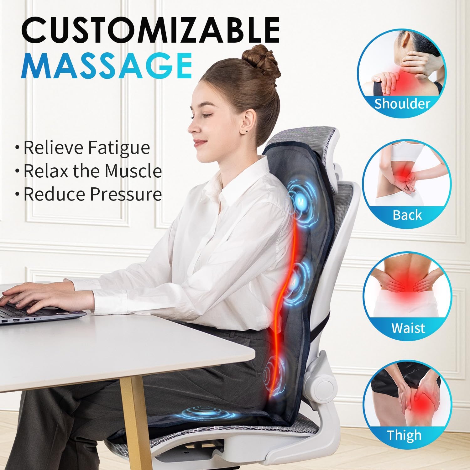 Ultimate Comfort Chair Cushion: Featuring a lightweight, portable design, this massage heating pad is an ideal gift for any occasion, like Father’s Day, Mother’s Day, Thanksgiving Day, and Christmas Day.