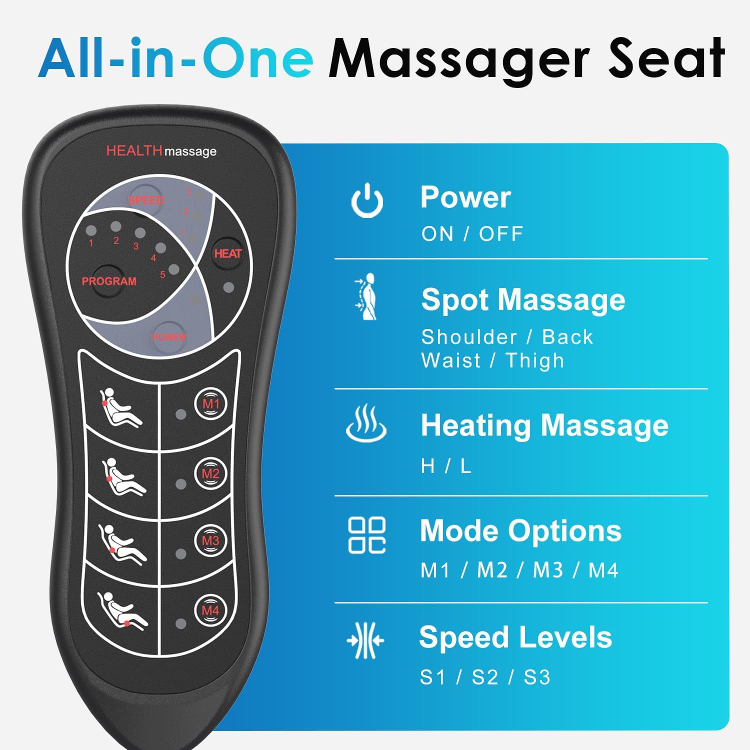 Chair Massager for Added Convenience: The massage chair pad includes a user-friendly hand controller and an adjustable strap that fits most chairs effortlessly. The massage pad is suitable for recliners, office chairs, sofas, and more.