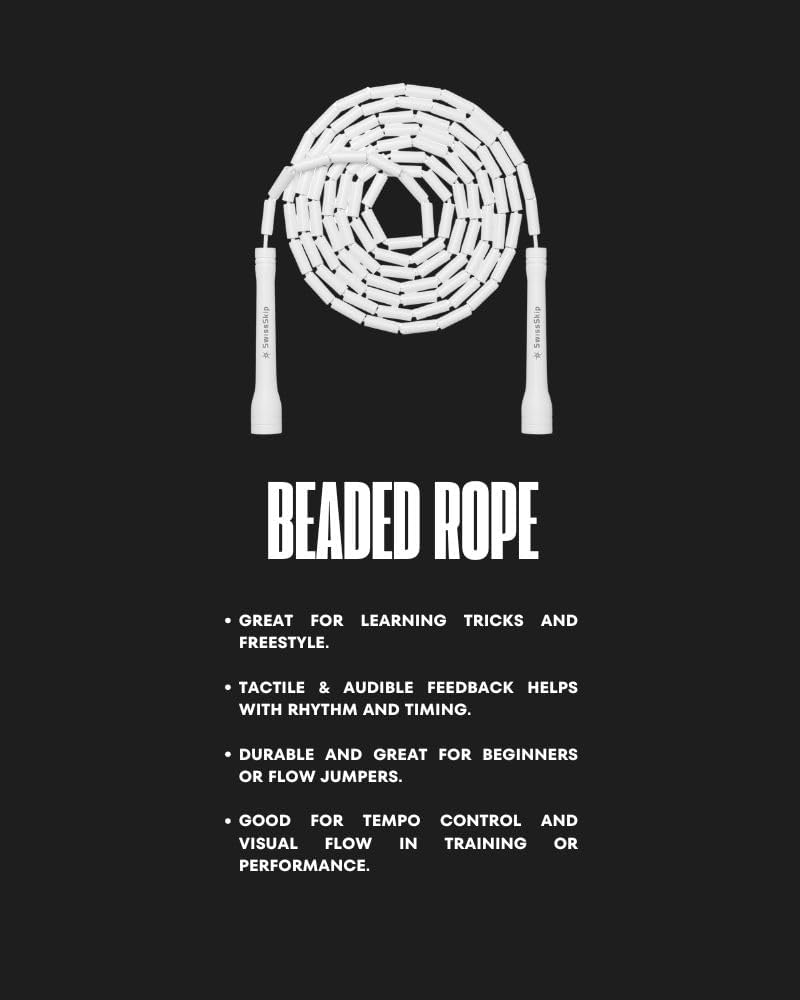 Swissskip beaded rope is a perfect rope for begginers. The beads provide weight and resistance, which helps to improve coordination and timing while jumping.