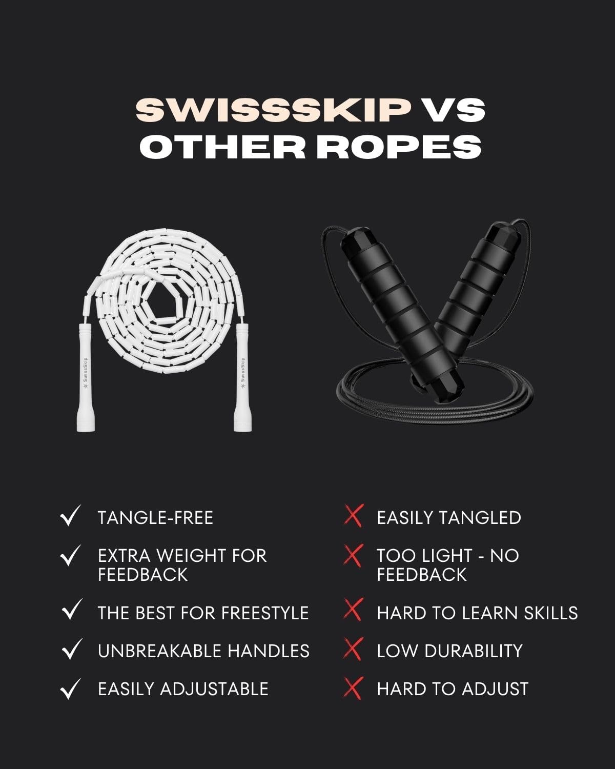 **Attention**Please be aware when buying your rope – Swissskip original rope designed by Dayan Kolev can be purchased only through Swissskip Store on Amazon.* Introducing Lightweight Beaded Jump rope by Dayan Kolev. The rope that will help you learn tricks and releases. Ideal size and weight for beginners or advanced athletes looking to perfect their jump rope game. Match with the Xelerate SwissSkip rope to master both footwork, speed, endurance and learn new skills.
