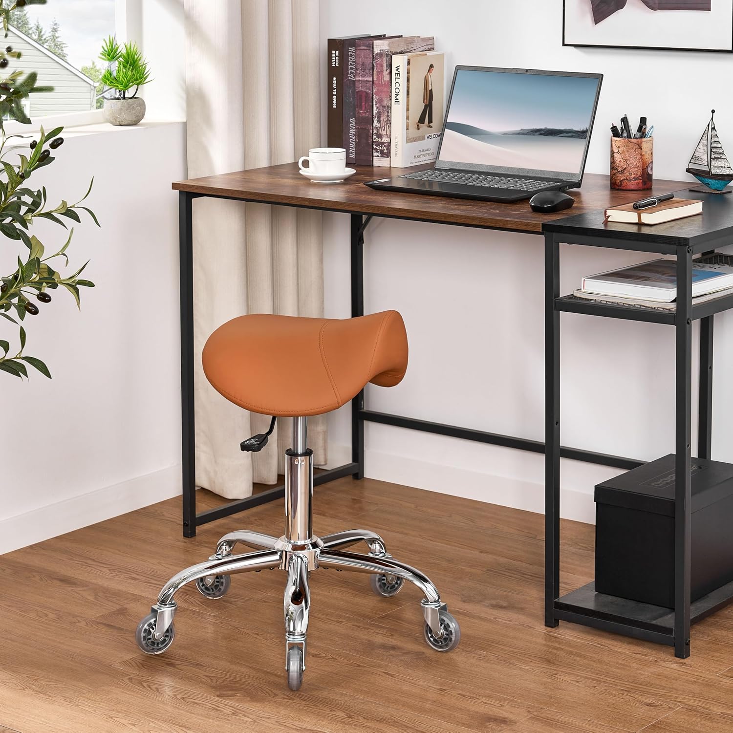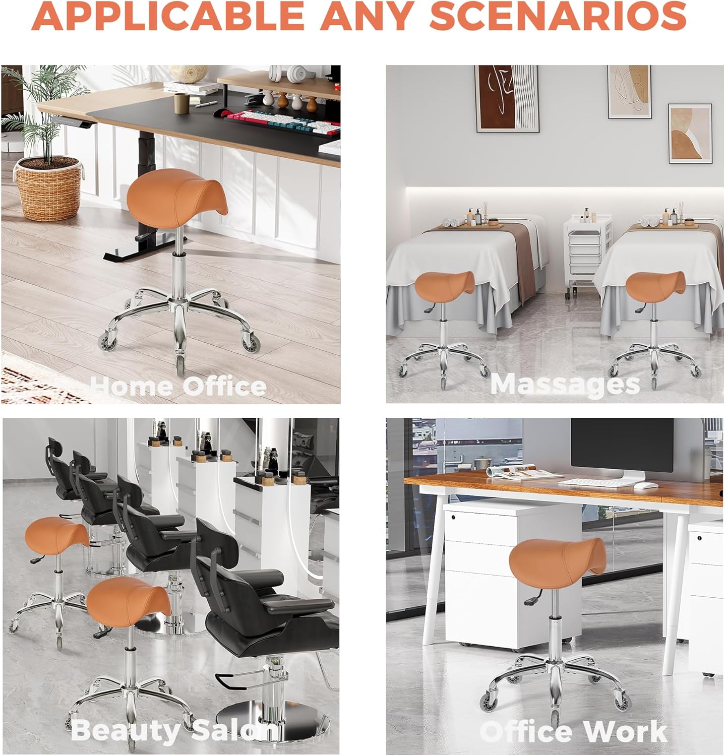 Silent Sliding Casters: This saddle stool features 360-degree swivel function for easy rotation. Equipped with 5 swivel casters, it is easy and smooth to move, does not make noise, does not snag hair, and prevents scratches on floors