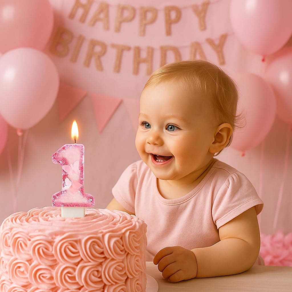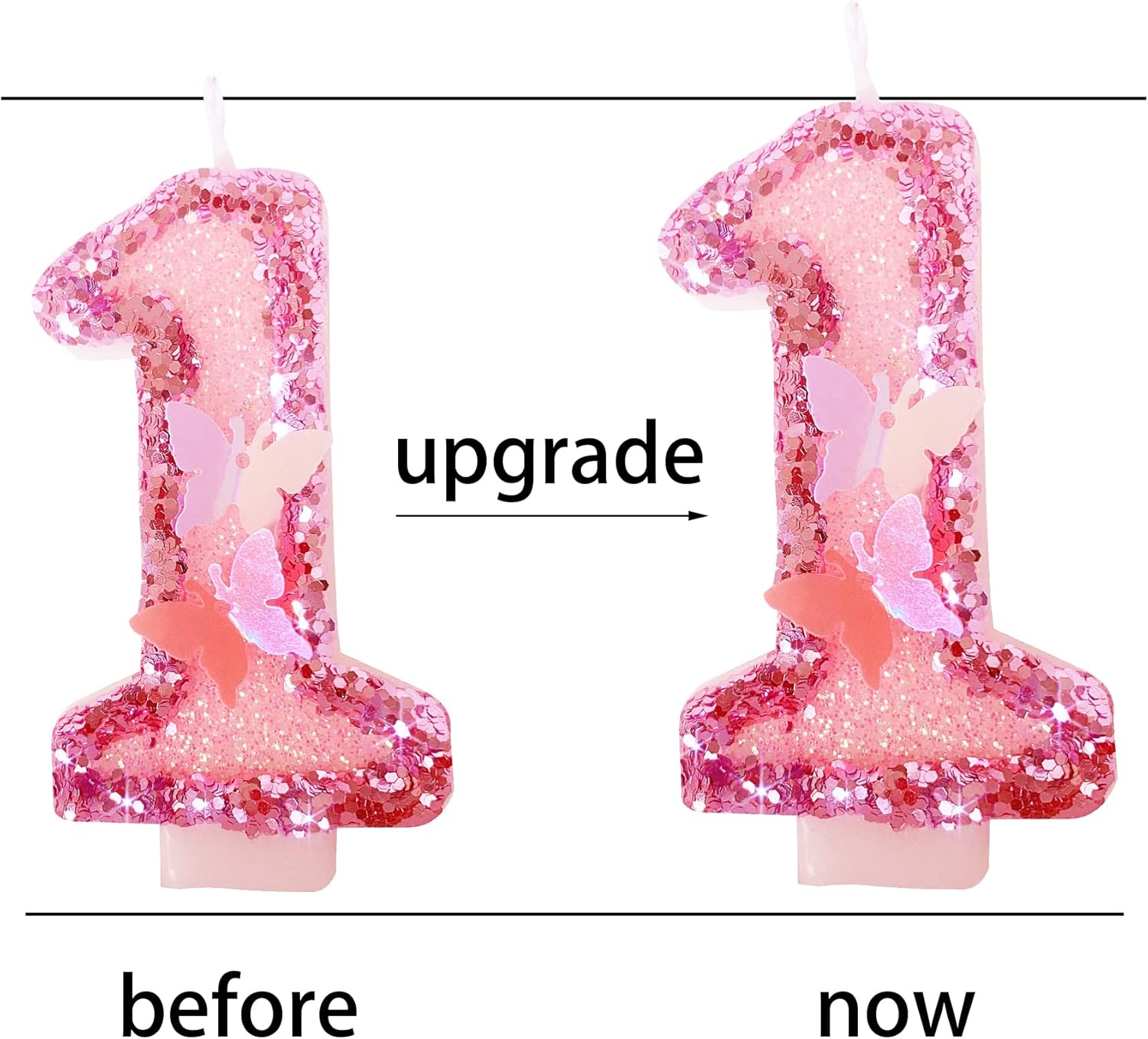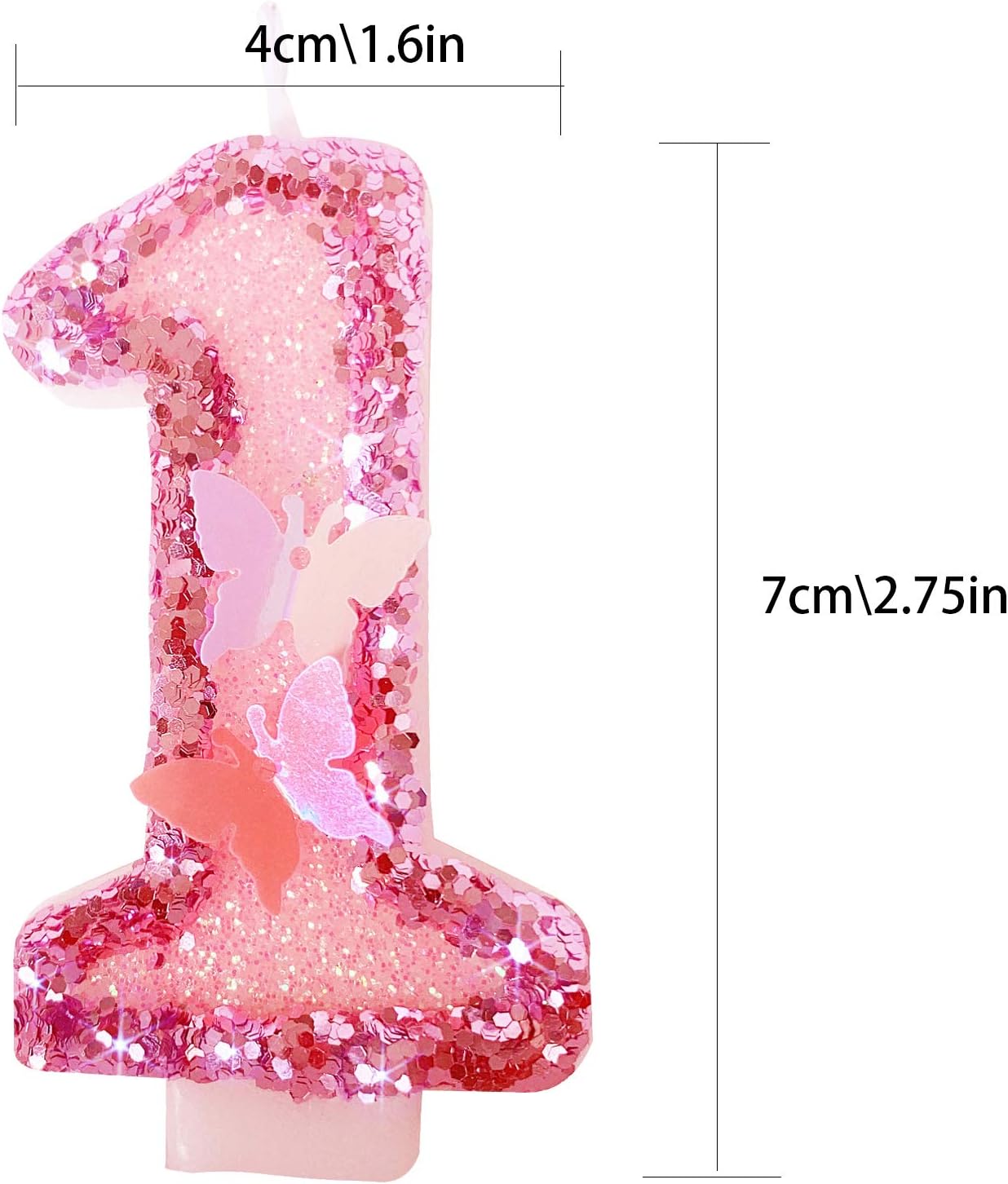 Birthday Candles Number 1,Pink Glitter Happy Birthday Cake Candles Handmade Sequin Numeral Candle