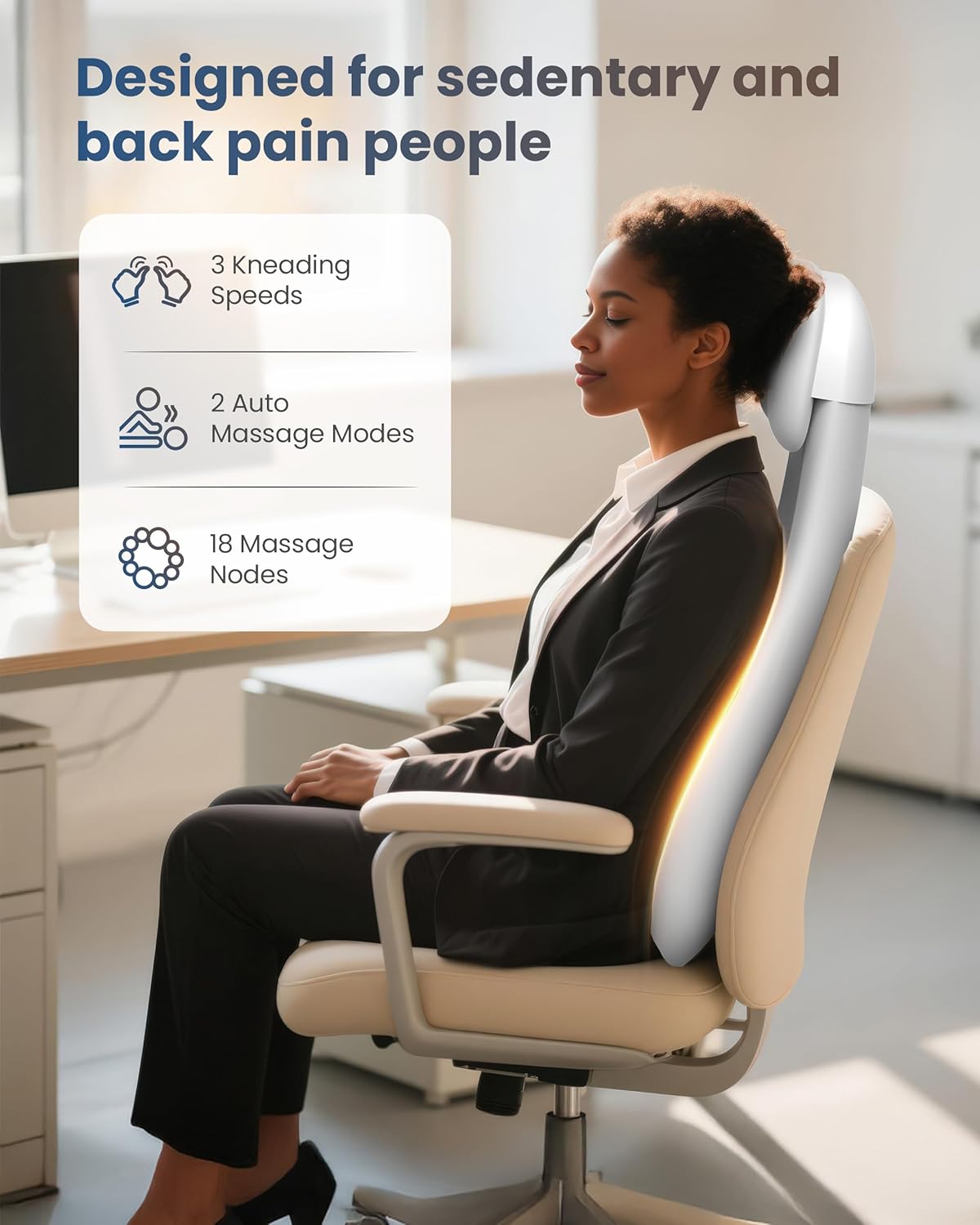 Chair Massager with Customized Massage-Area: The back massager for back pain relief deep tissue has the “region” button, which you can press to cycle through the massage region: full back/upper back/lower back. This function allows users to customize there massage preferences.