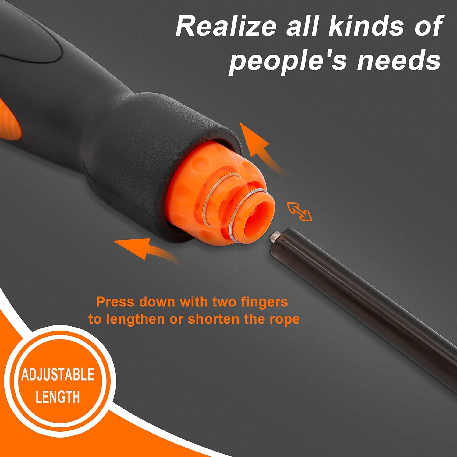[ Easy to use for all ]: Upgraded spring lock for quick adjustment of length, and adjust it according to the needs of different ages. There are no technical requirements for cordless skipping. Recommended for children, youth, and women.