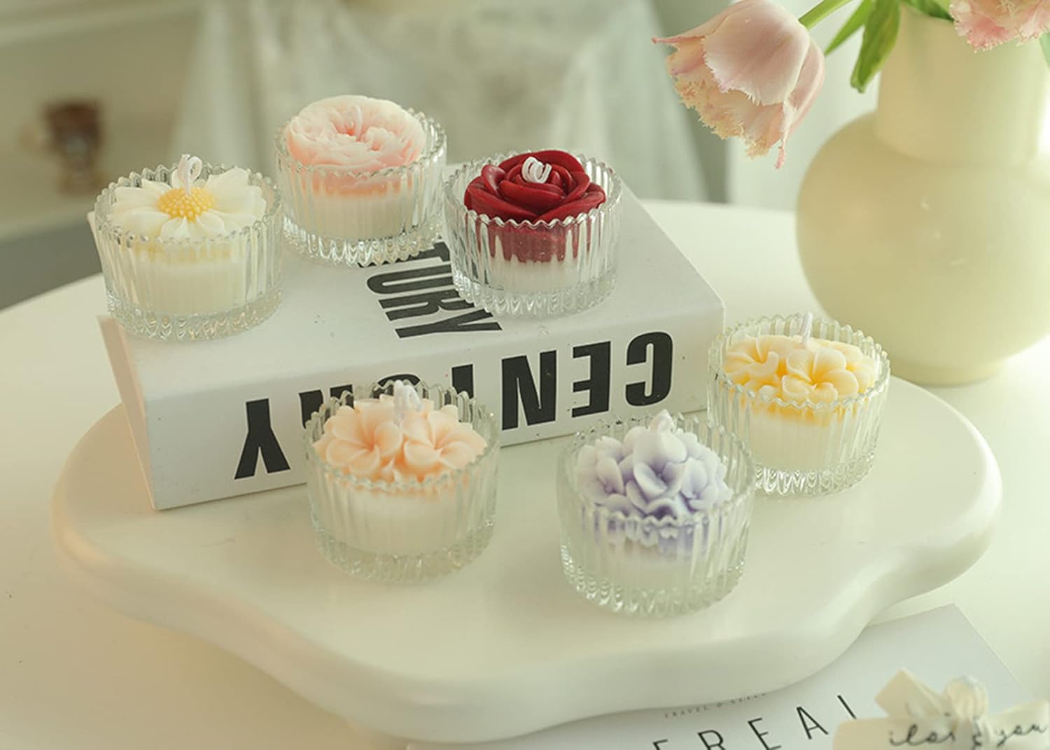 Daisy Flower Aroma Candle,230G Soy Wax Scented Decorative Candle in Glass Jar 8 Hours,Handmade Candle for Table Photo Prop,Prefect Gift for Meditation Stress Relief Mood Boosting Bath Yoga