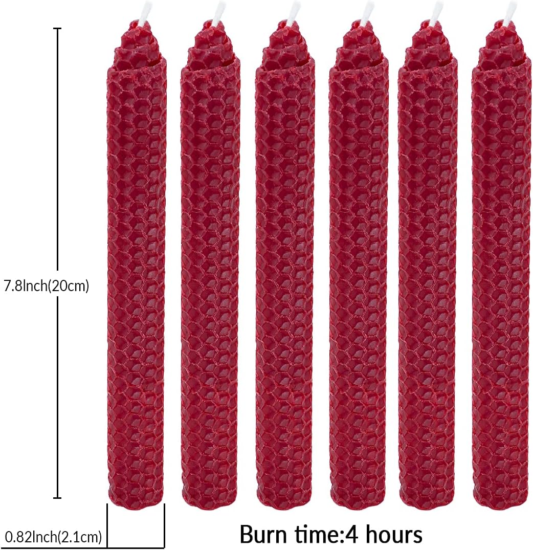 DEYBBY 8” Hand-Rolled Beeswax Taper Candles, 6 Pack Pure Natural Handmade Cone Top Candles for Romantic Decoration and Valentine’s Day Gifts Red