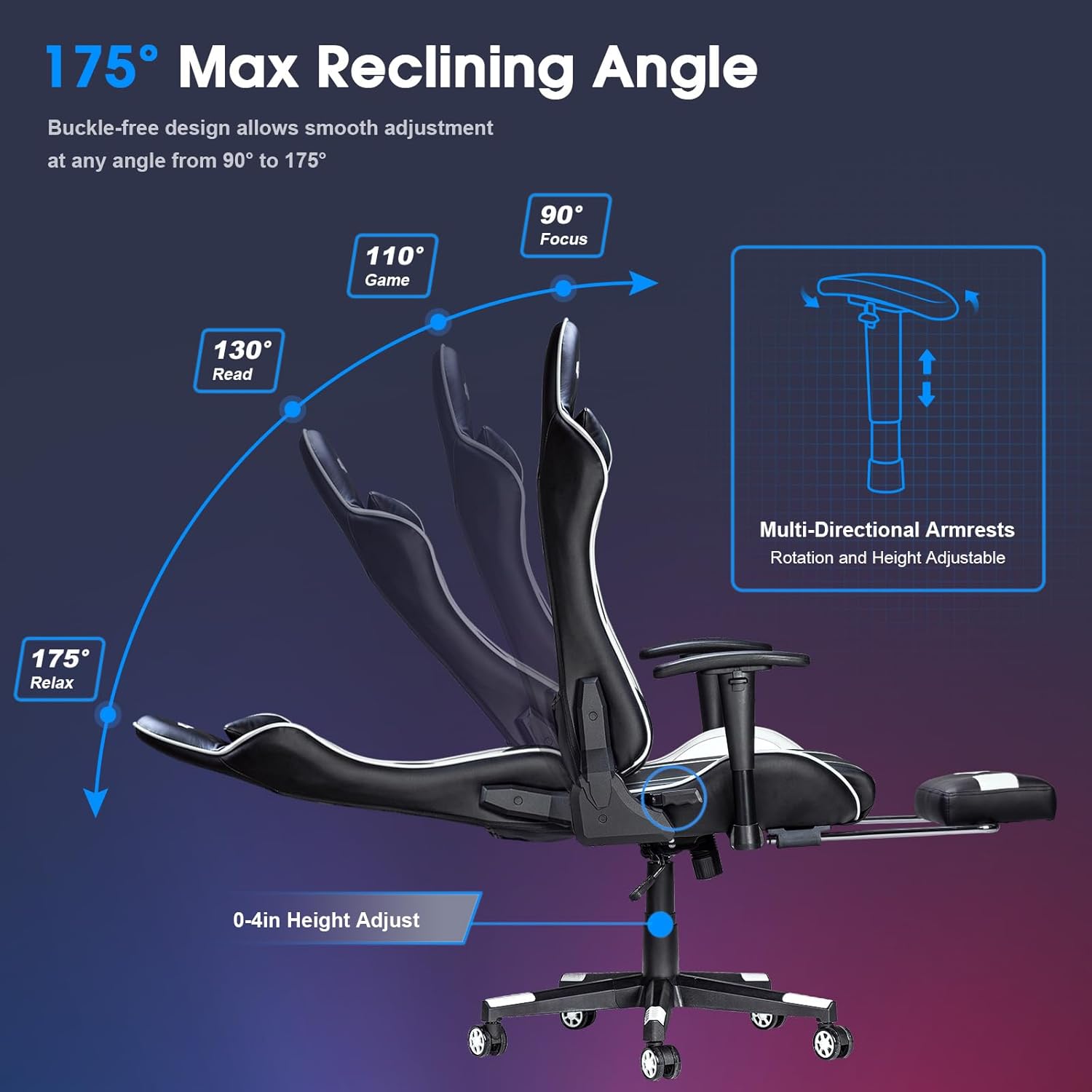175° Adjustable Office Chair with Footrest: The backrest can be adjusted up to 175°, plus an extendable, thickened footrest for optimal relaxation. With 0–3.95in of height adjustment, ideal for adults, women, kids for working, gaming, studying or resting