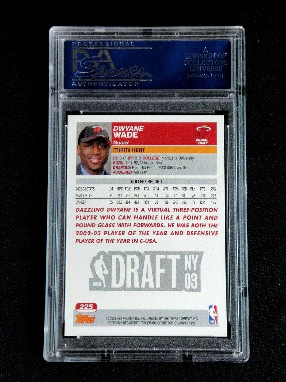 DWYANE WADE PSA/DNA SIGNED 2003 TOPPS ROOKIE CARD #225 MINT AUTOGRAPH AUTO HEAT . If a product is unsigned or non game-used, a hologram will not be included. Dwyane Wade memorabilia. Miami Heat memorabilia.