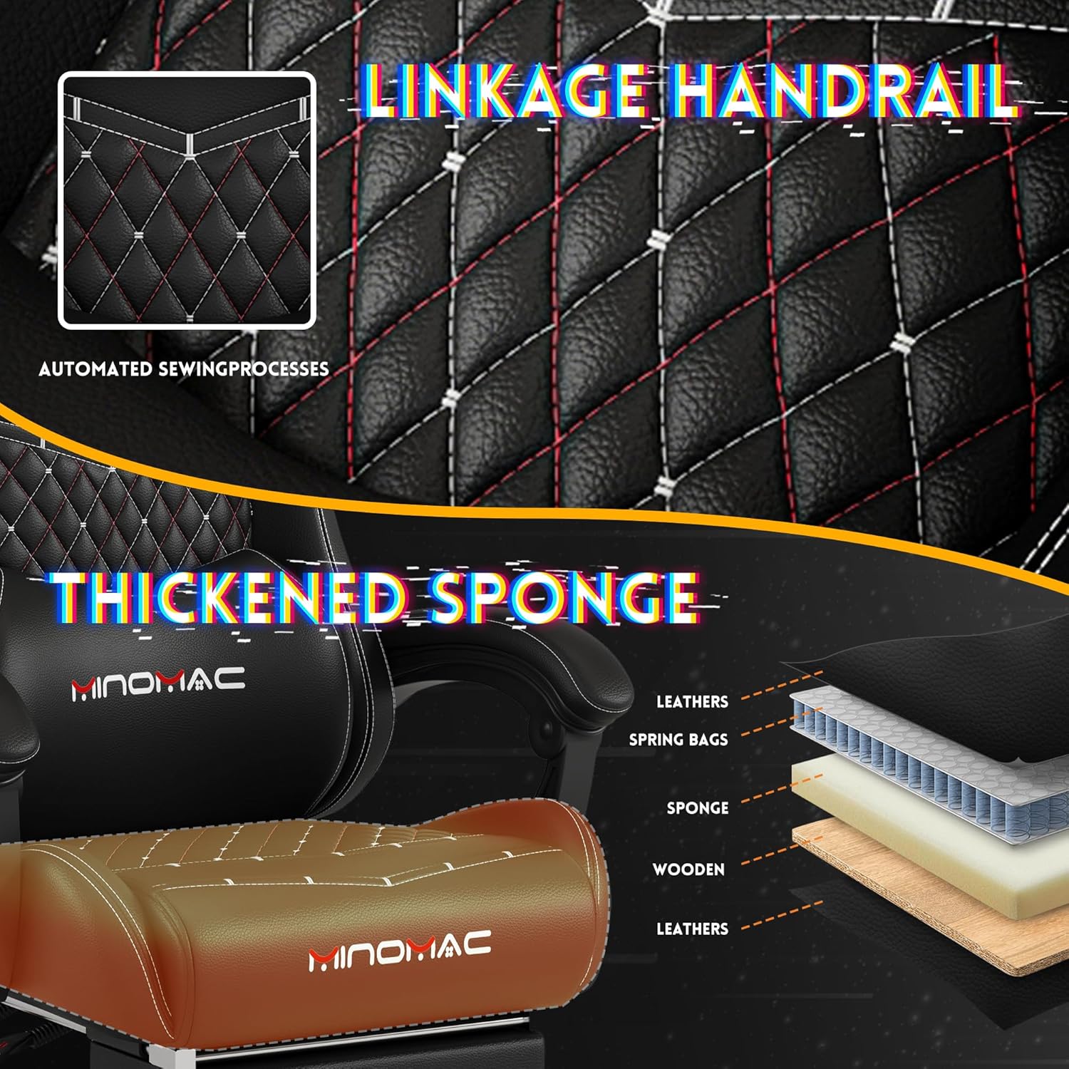 Gaming Chair,Ergonomic Computer Gaming Chair,400lb Load-Bearing,Retractable Footrest/Waist Support/Ergonomic Backrest[Spring + 4D Sponge] (Black)