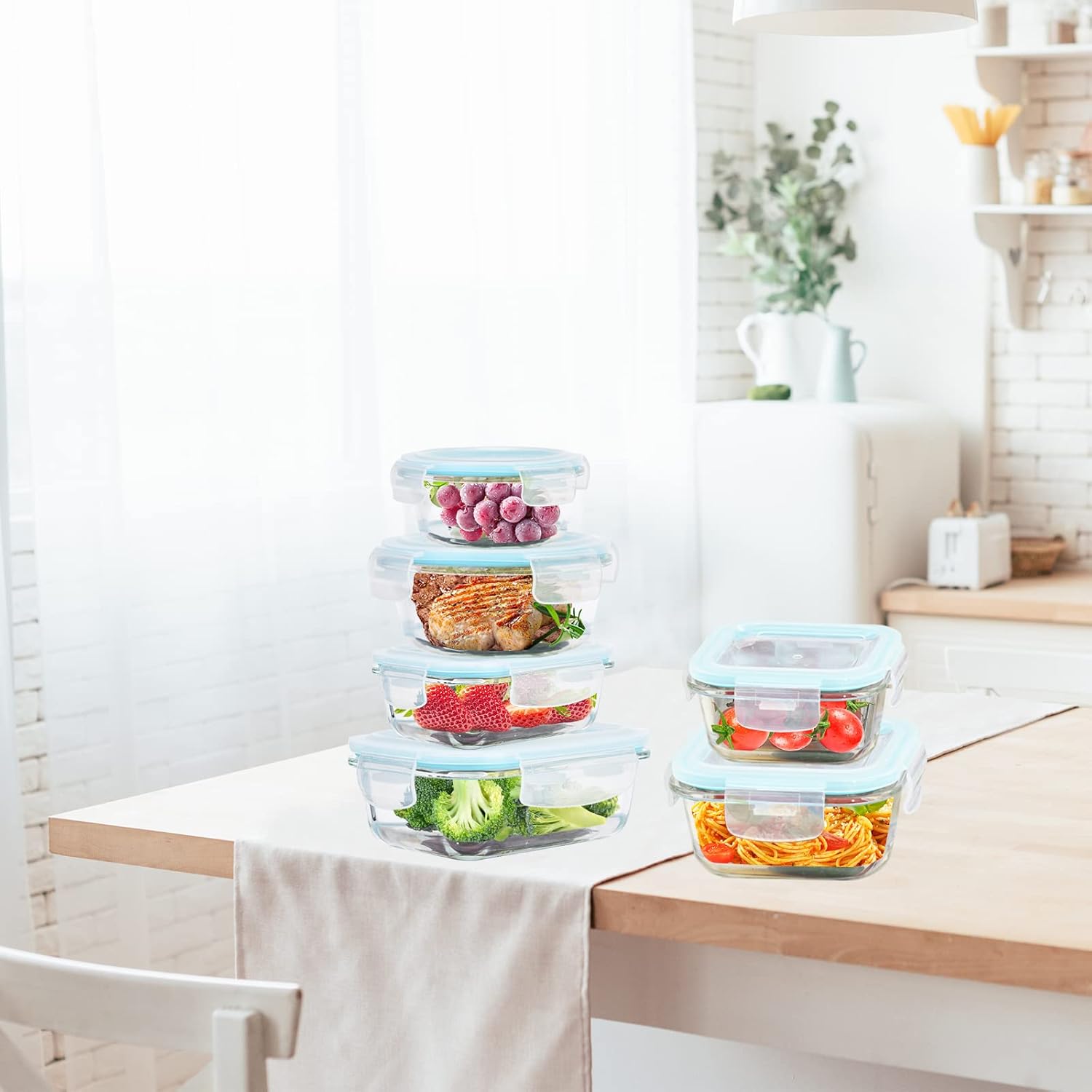 Durable glass storage containers for food storage, oven-microwave-fridge-dishwasher safe