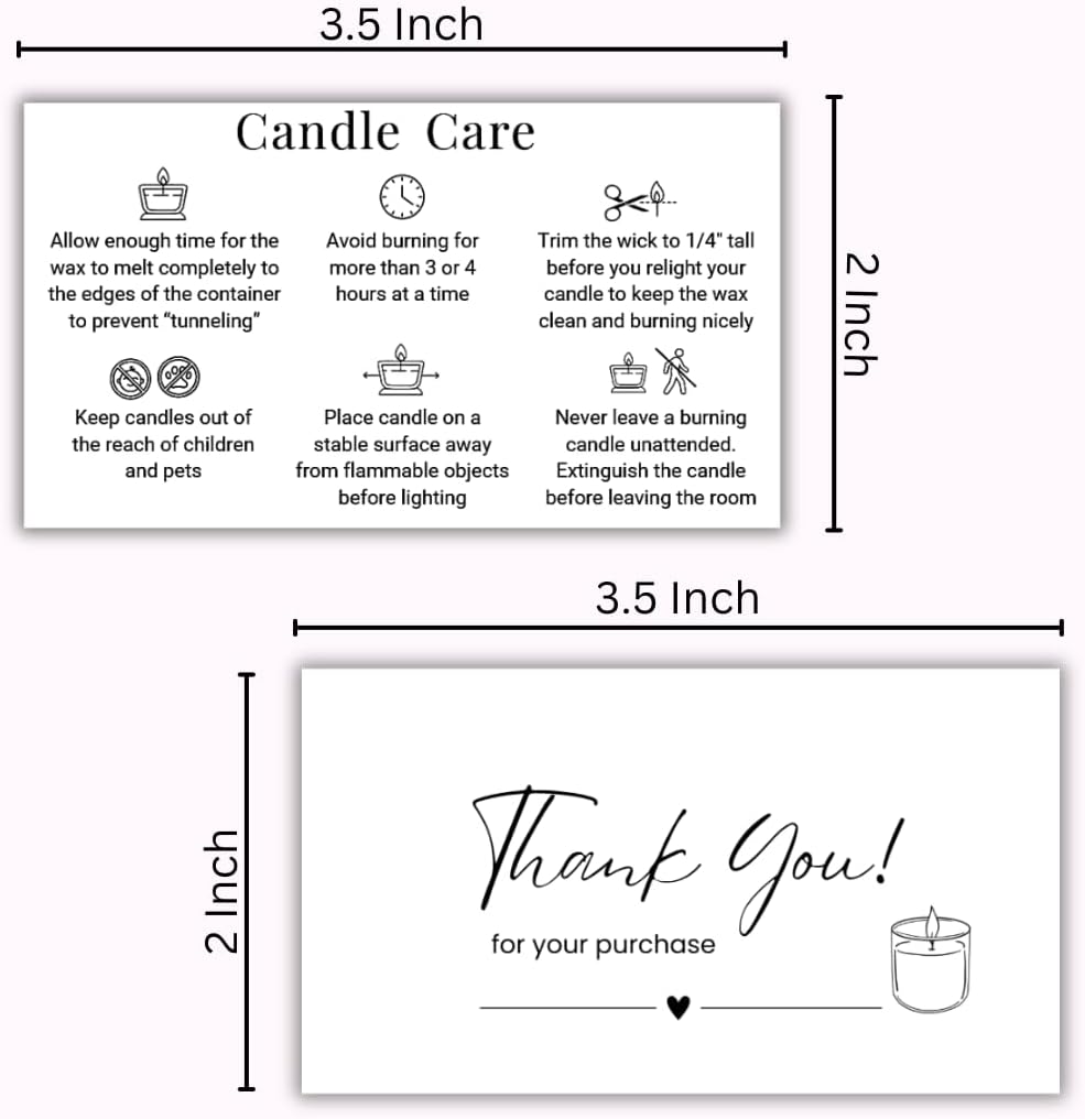 ✅Instructions care cards on how to make their Handmade Candle last as long as possible.