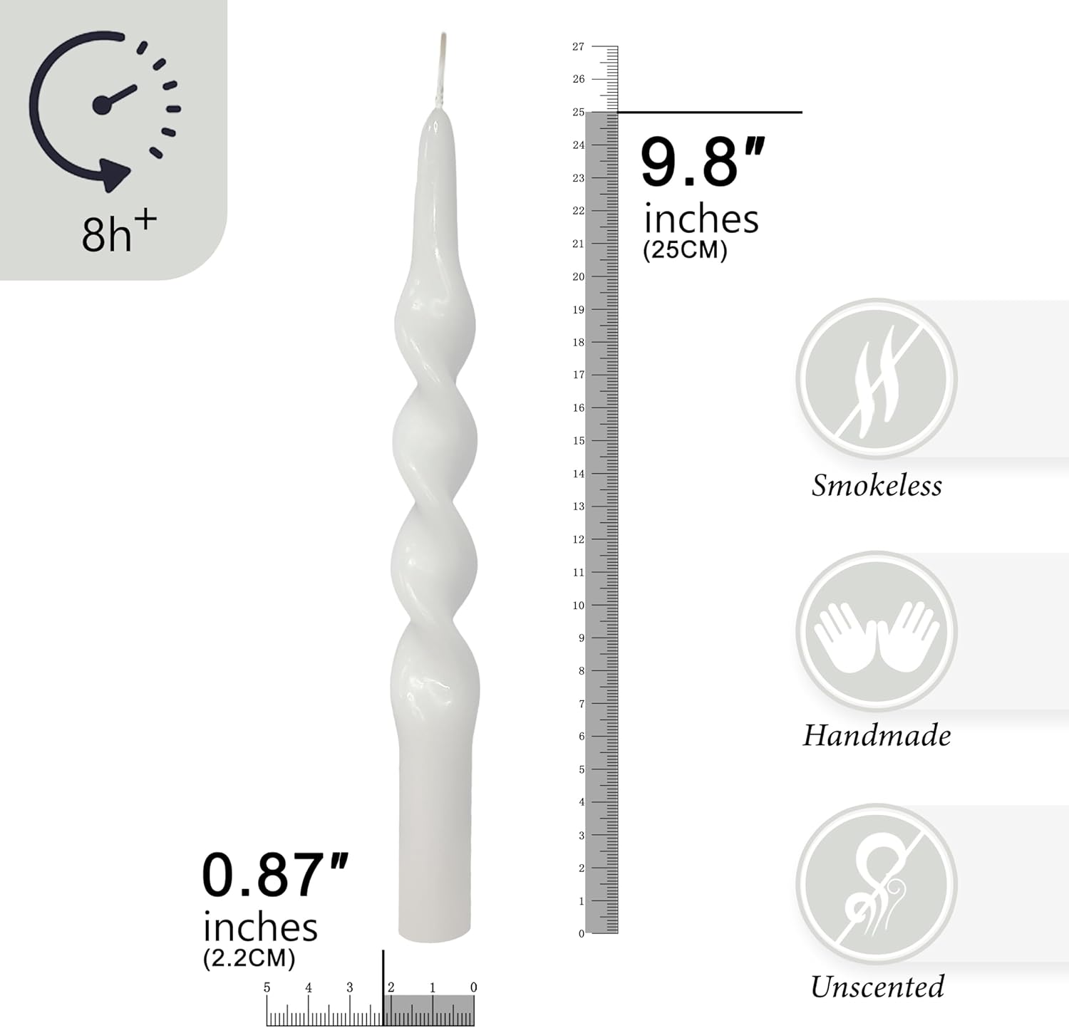 【UNSCENTED & SMOKELESS SAFETY CANDLES】These attractive tall candles are crafted of the highest purity wax, clean cotton wicks and eco-friendly dyes. Our spiral candles are odorless, burn cleanly and leave no residue, dripless and smokeless. ideal for those who are allergic or react to strong scents.