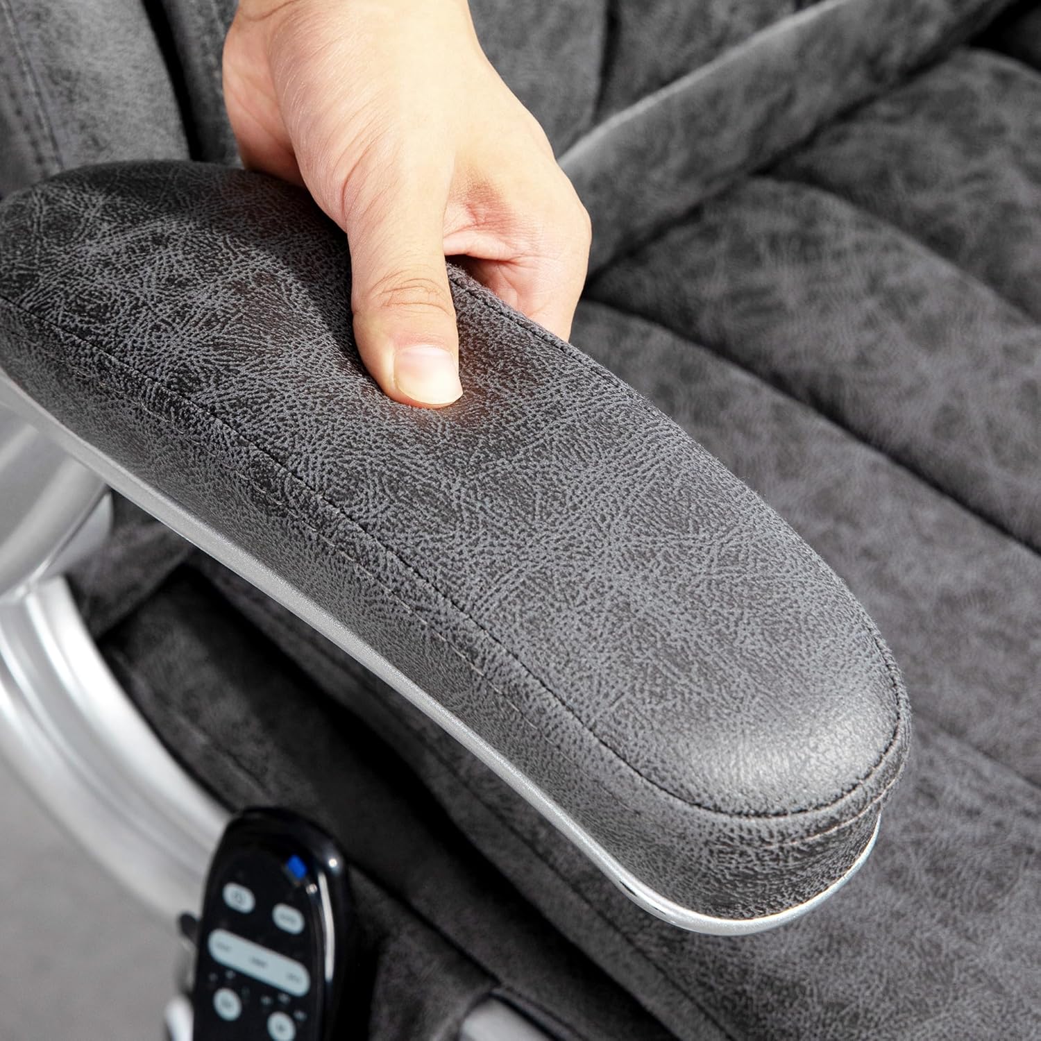 Vibration Massage and Heat: This office desk chair features a six-point vibration massage targeting the back, lumbar, and thighs, with eight modes and a 15/30-min timer. It is enhanced by a soothing heat function in the lumbar area.