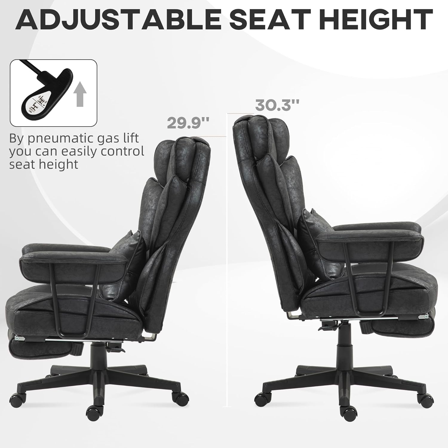 Adjustable Comfort Features: Tailor your sitting experience with this ergonomic office desk chair, which allows you to adjust the seat height from 20.1″ to 23.2″ and the reclining back angle up to 140° for optimal comfort.
