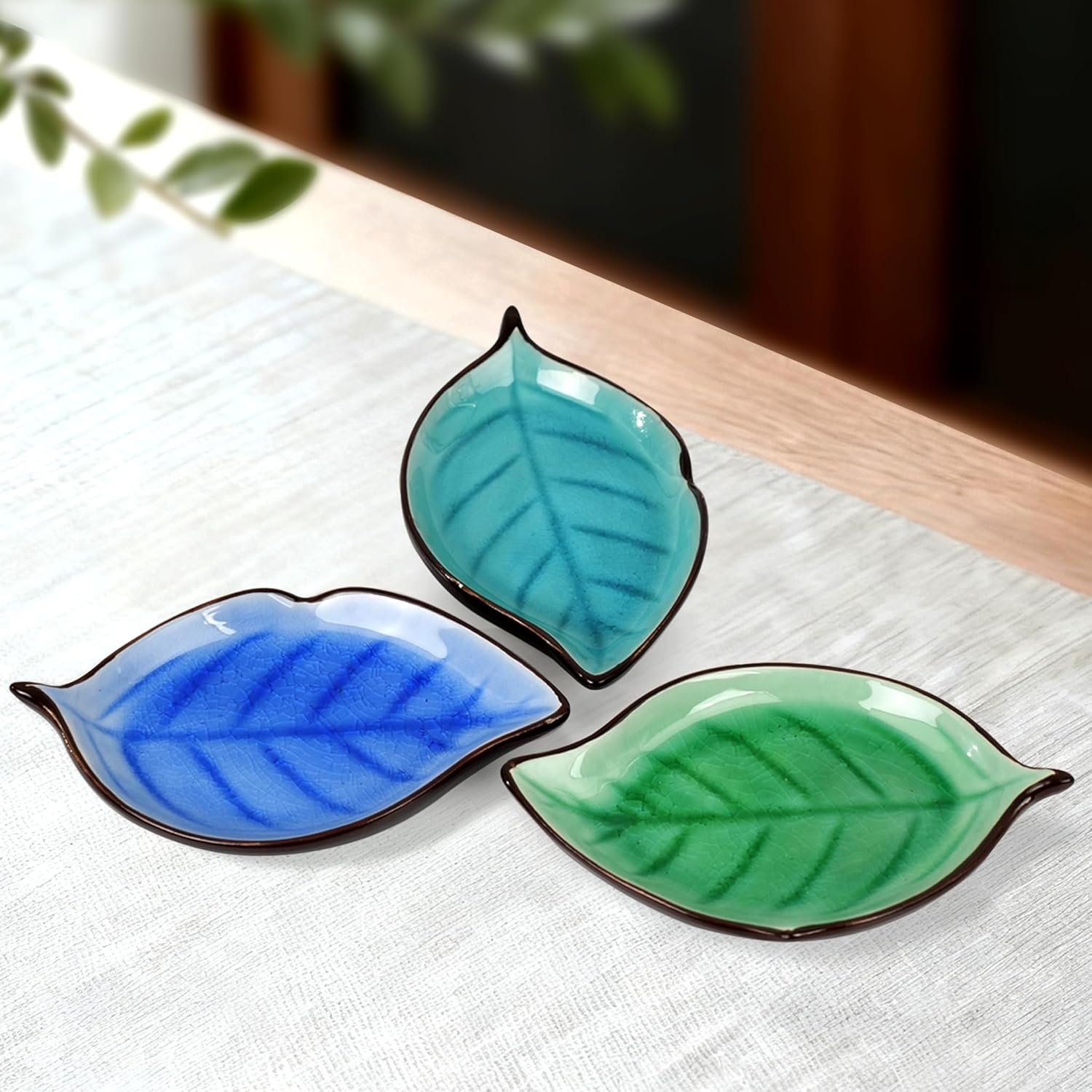 Incense Holder for Sticks (9 Holes) and Cones, Handmade Ceramic Incense Ash Catcher for Meditation, Yoga, SPA Days, Relaxing, Home Decor, Candle Holder, Easy to Clean, Leaf-Shape (Blue)