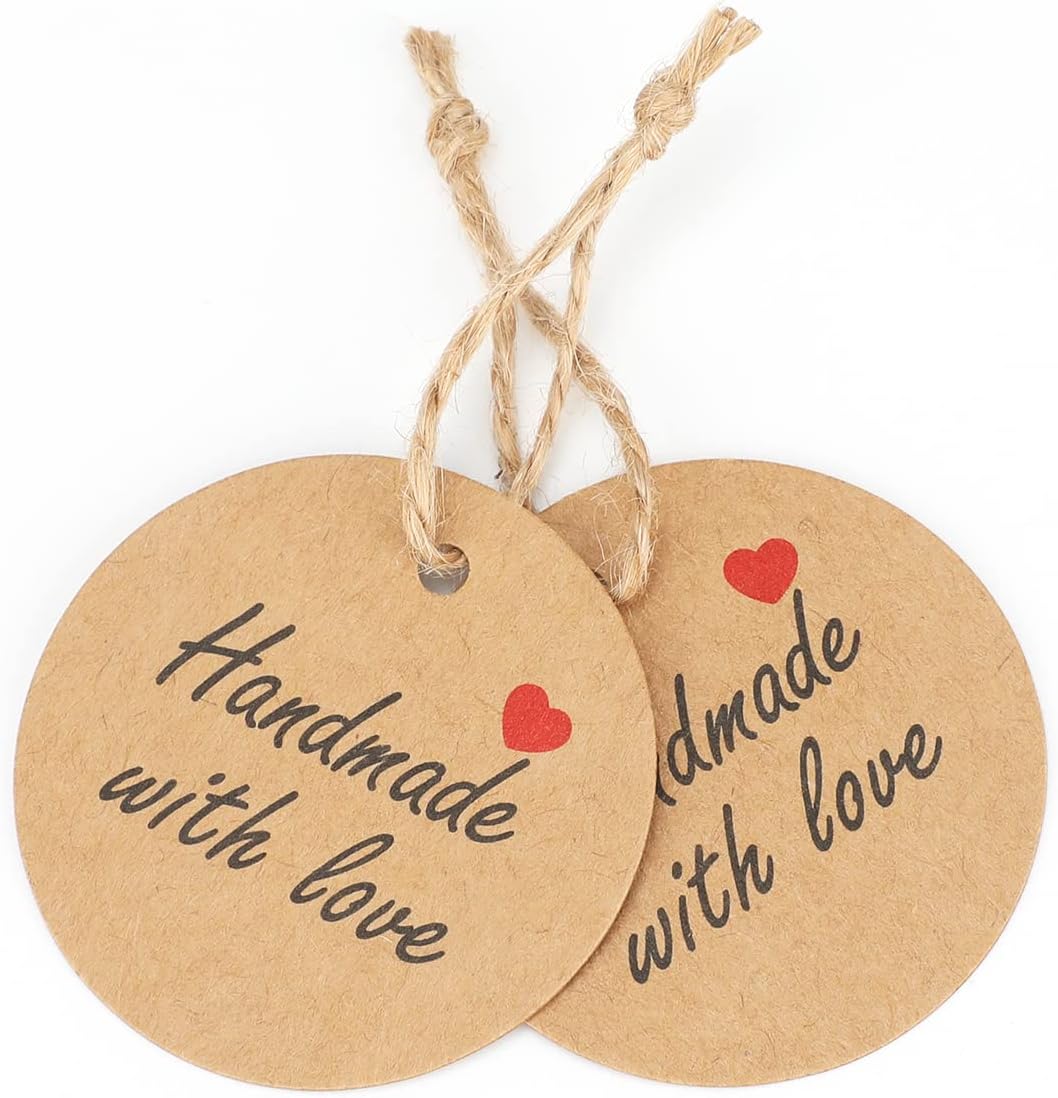 【Handmade with Love Tags Packaging Includes】- 100 pieces Handmade with Love gift tags.Comes with 2 bundle jute twine.Sufficient quantity can meet your festival using needs.