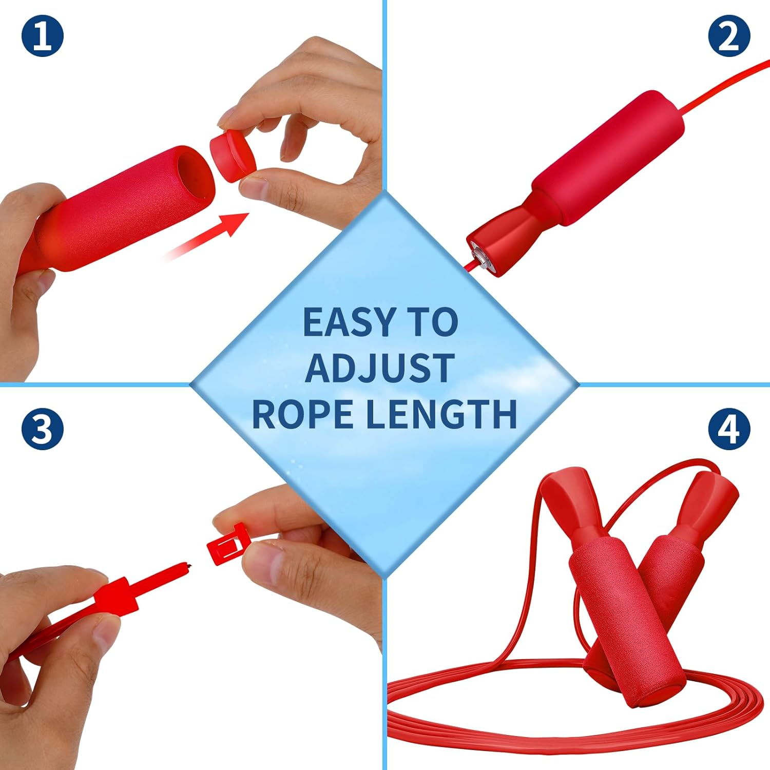 【Super Comfortable】The skipping rope features an ergonomic lightweight handle wrapped in soft EVA memory foam for a comfortable and strong grip, allowing you to take full advantage of your workout.