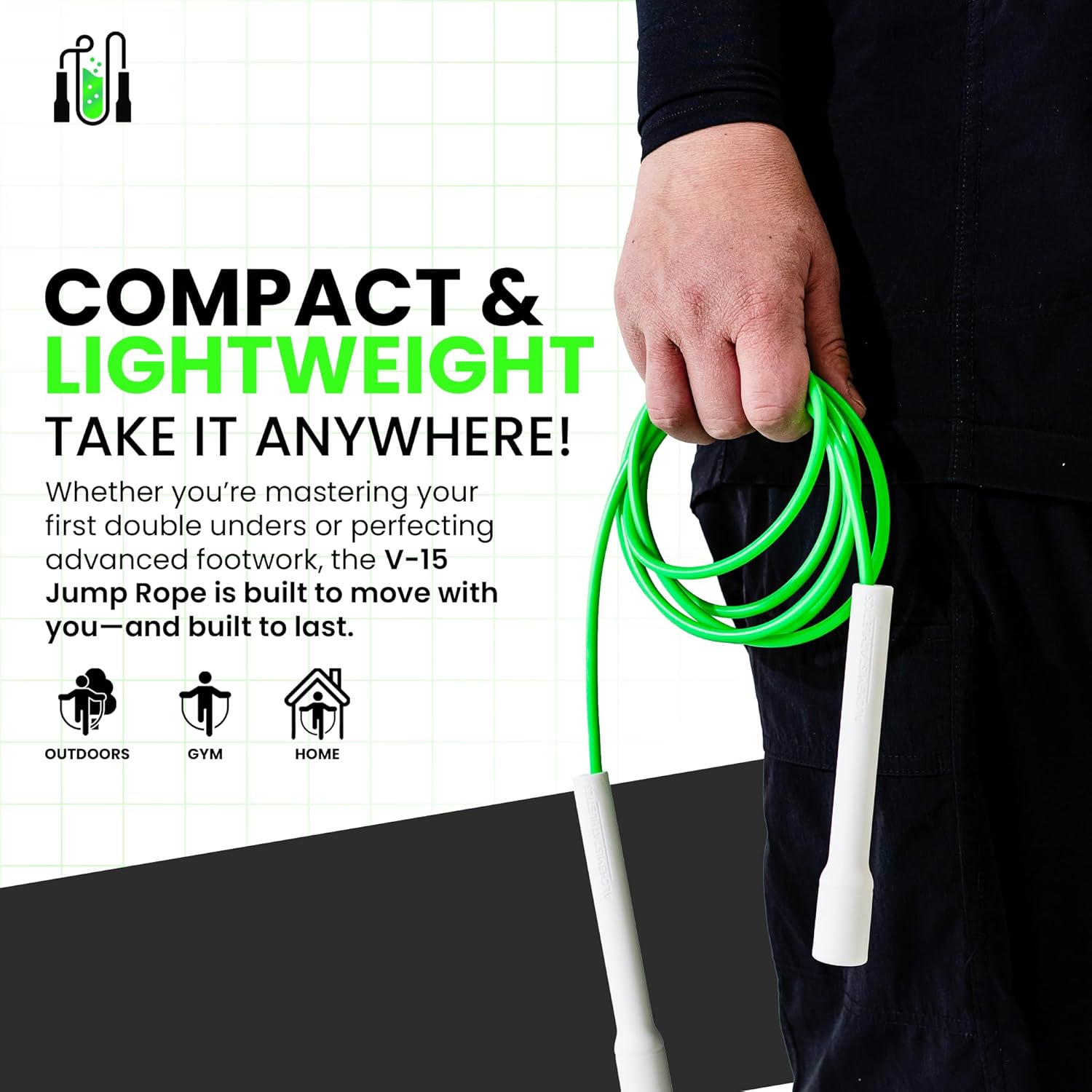 Engineered for Speed & Precision – Take your training to the next level with the V-15 Jump Rope. Designed for fast, controlled spins and flawless freestyle flow. Ideal for double unders, cardio, and footwork drills, this rope is perfect for athletes, beginners, and pros building endurance and agility.