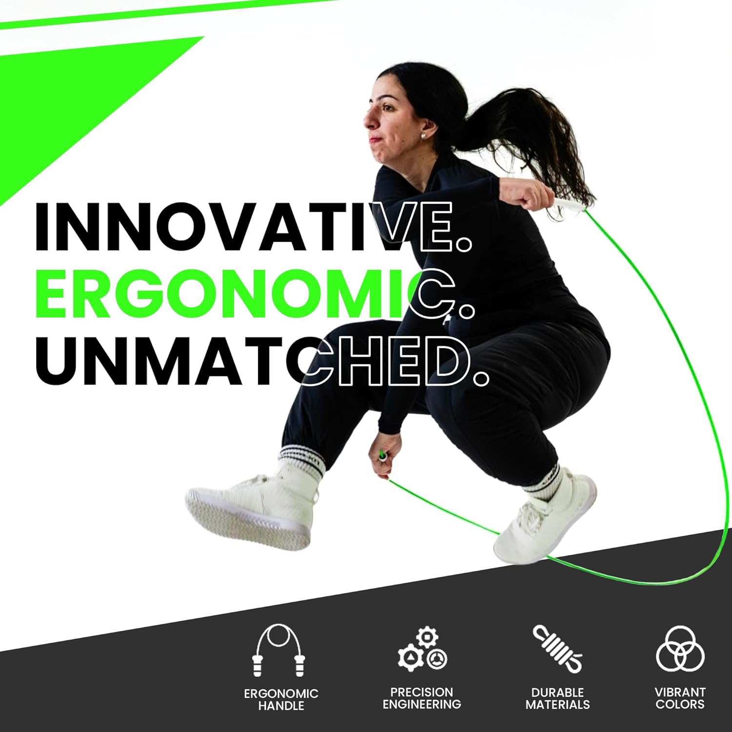 Advanced Non-Slip V-15 Handles – Developed after 15 prototypes, our exclusive patented jump rope handles feature a shatterproof build and matte grip finish for a secure, non-slip hold. Ergonomically designed for comfort and control, they’re built to withstand intense training and deliver long-lasting durability.
