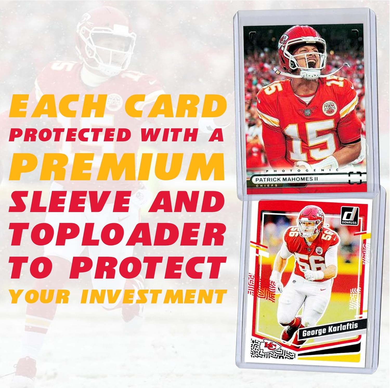 Kansas City Chiefs Super Bowl LVIII Football Card Bundle, Set of 6 Assorted Patrick Mahomes Travis Kelce George Karlaftis Marquez Valdes Scantling Football Cards Protected by Sleeve and Toploader