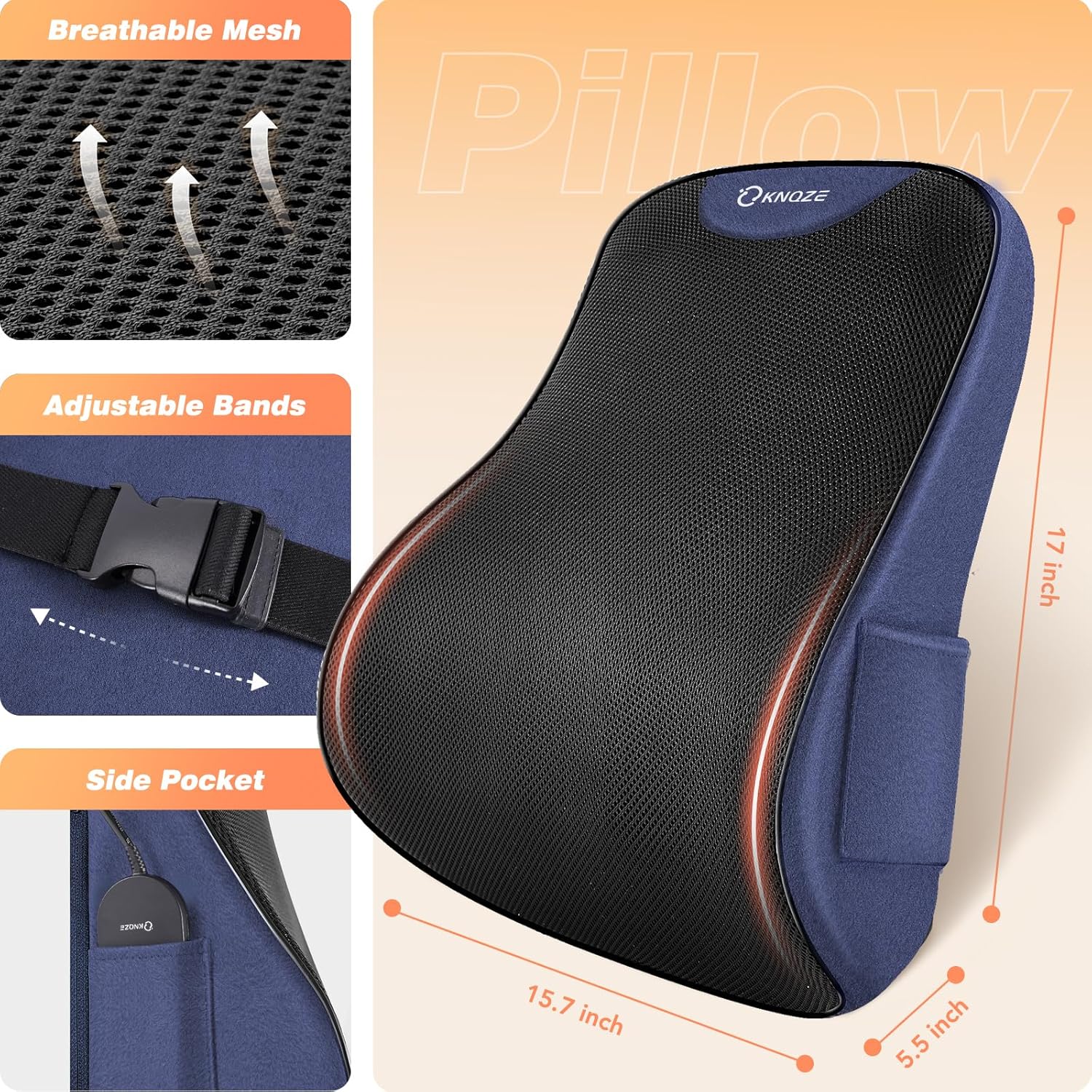 Ergonomic Design for Office Chair: Suffer from back pain of incorrect sitting posture? Made of high-density memory foam, KNQZE lumbar support pillow contours to your back shape and spine, promotes a healthy sitting posture and effectively alleviates lower back pain and discomfort.