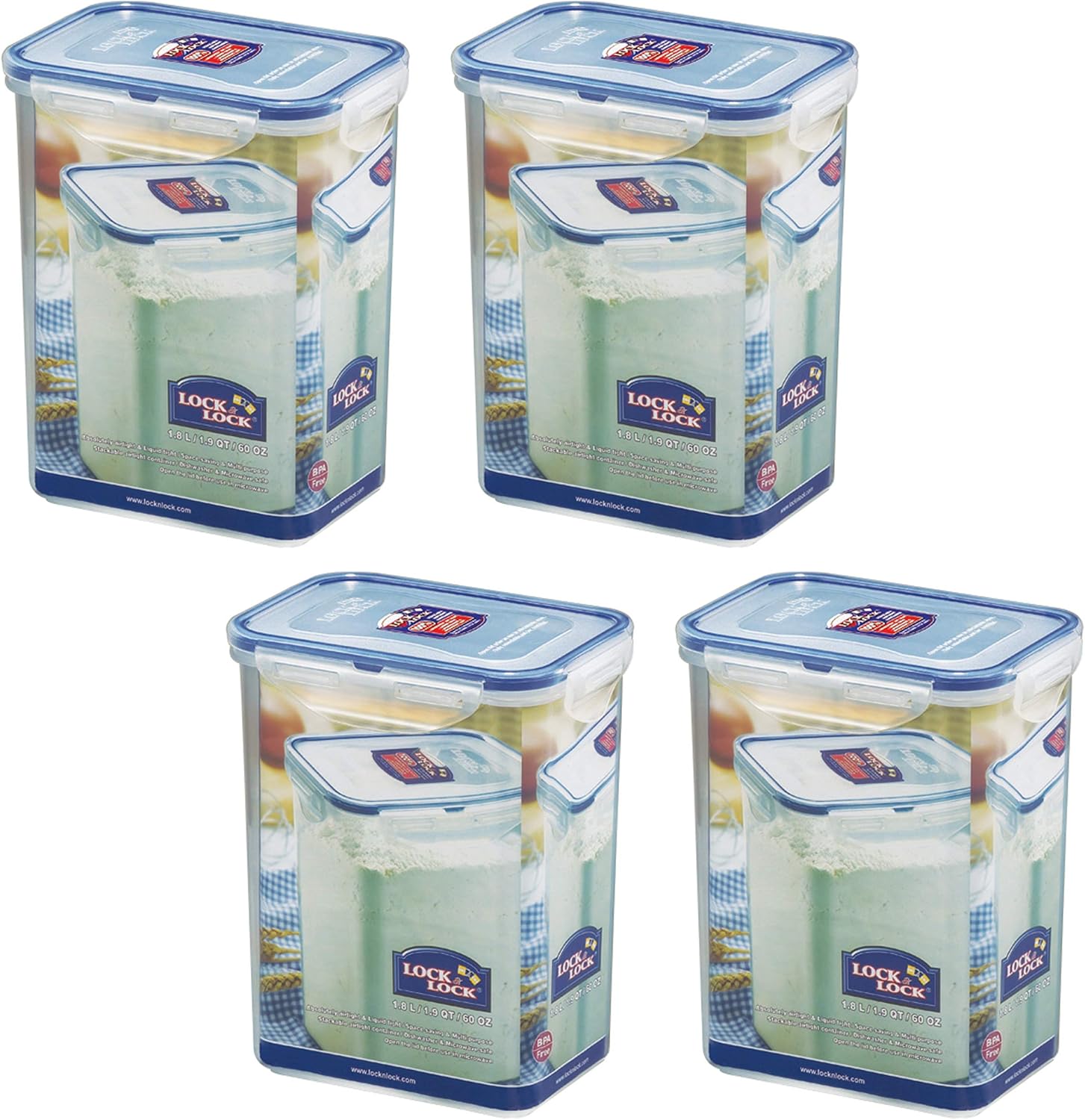 LocknLock Easy Essentials Airtight Rectangular Tall Food Storage Container 7.61 Cup, 4 Piece, Clear