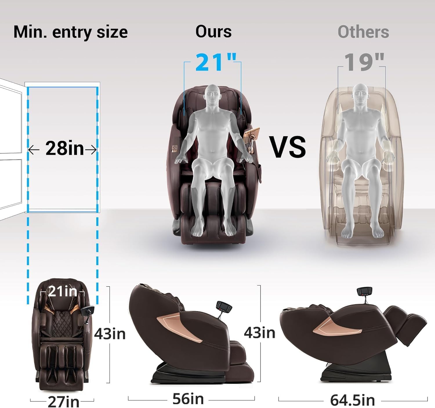 【Zero Gravity Massage Chair】One button zero gravity, giving you a weightless feeling during your massage. The zero-gravity recline helps reduce the stress on the back, evenly distributing the weight and pressure.