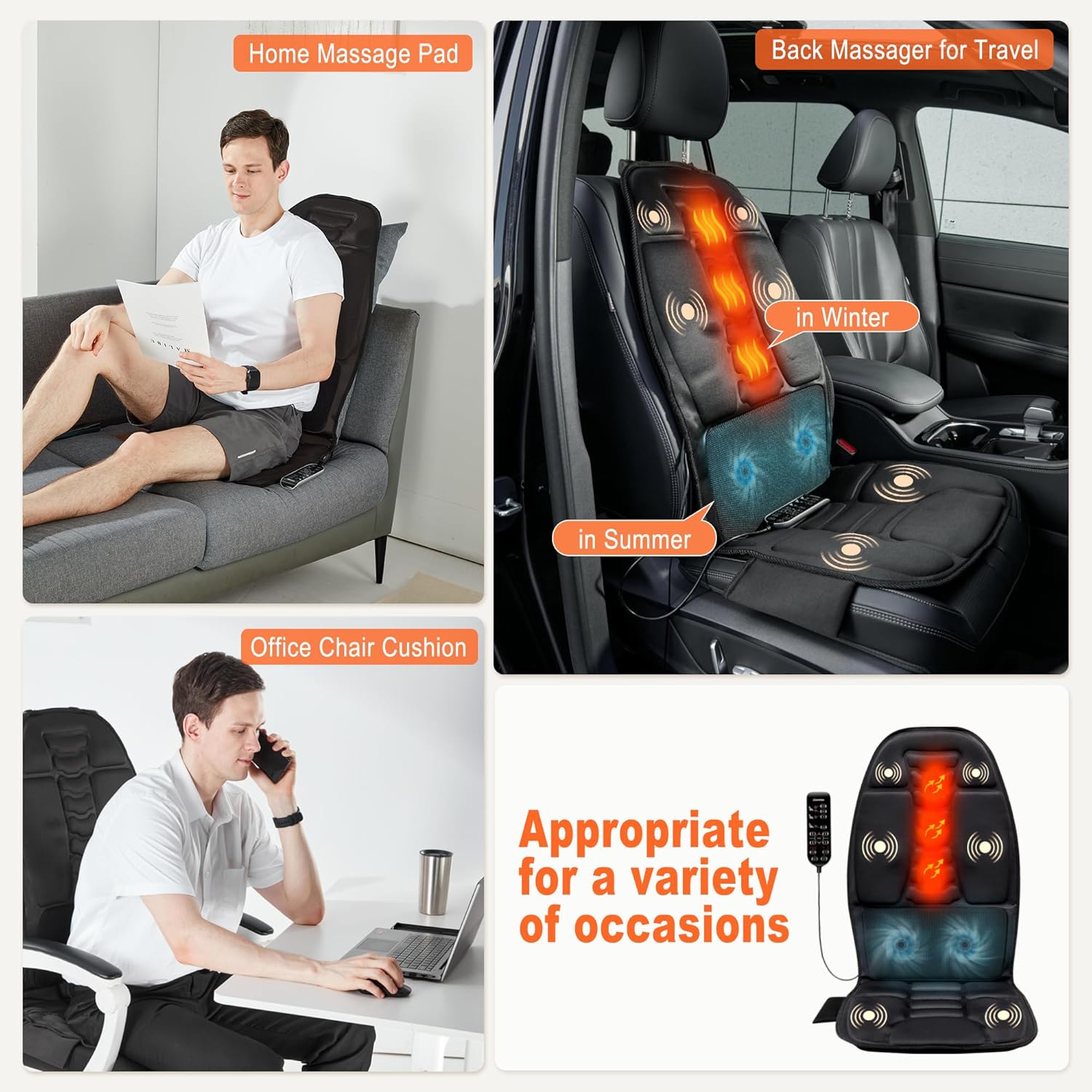 Ultimate Comfort Chair Cushion: Featuring a lightweight, portable design, this back massager is ideal for use at the office, at home, or anywhere you need relaxation. It’s the perfect gift for men, women.