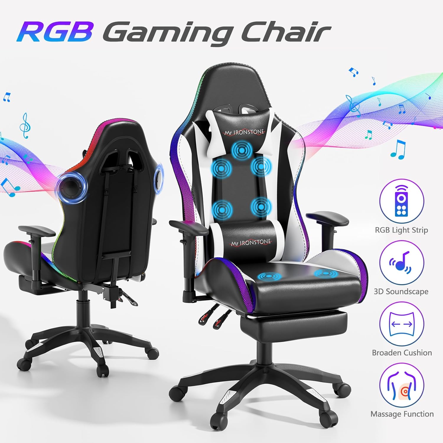 【Light Up Your Setup & Feel the Beat】”Why settle for a basic gaming chair when you can PULSE with your gameplay? This isn’t just RGB—it’ s a full-on light show. Choose solid hues, smooth color transitions to match your vibe. And the built-in speakers? They’re not just loud—they’re immersive. Sync to your phone blue tooth and feel the bass hit right as you drop into the game. Pro tip: Crank the tunes during loading screens. You’ll thank us later.”