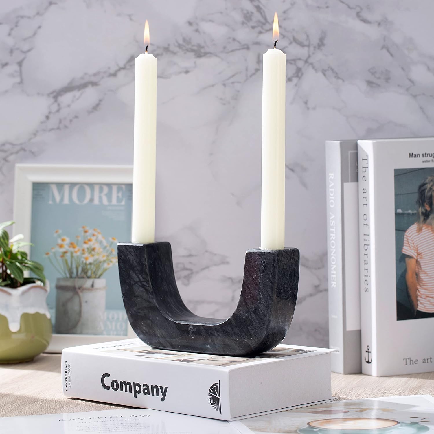 Natural Marble Candle Holder, U-Type Candlestick Holders for Taper Candles, Modern Candle Holder, Candle Sticks Holder Marble Home Decor (Natural Black)