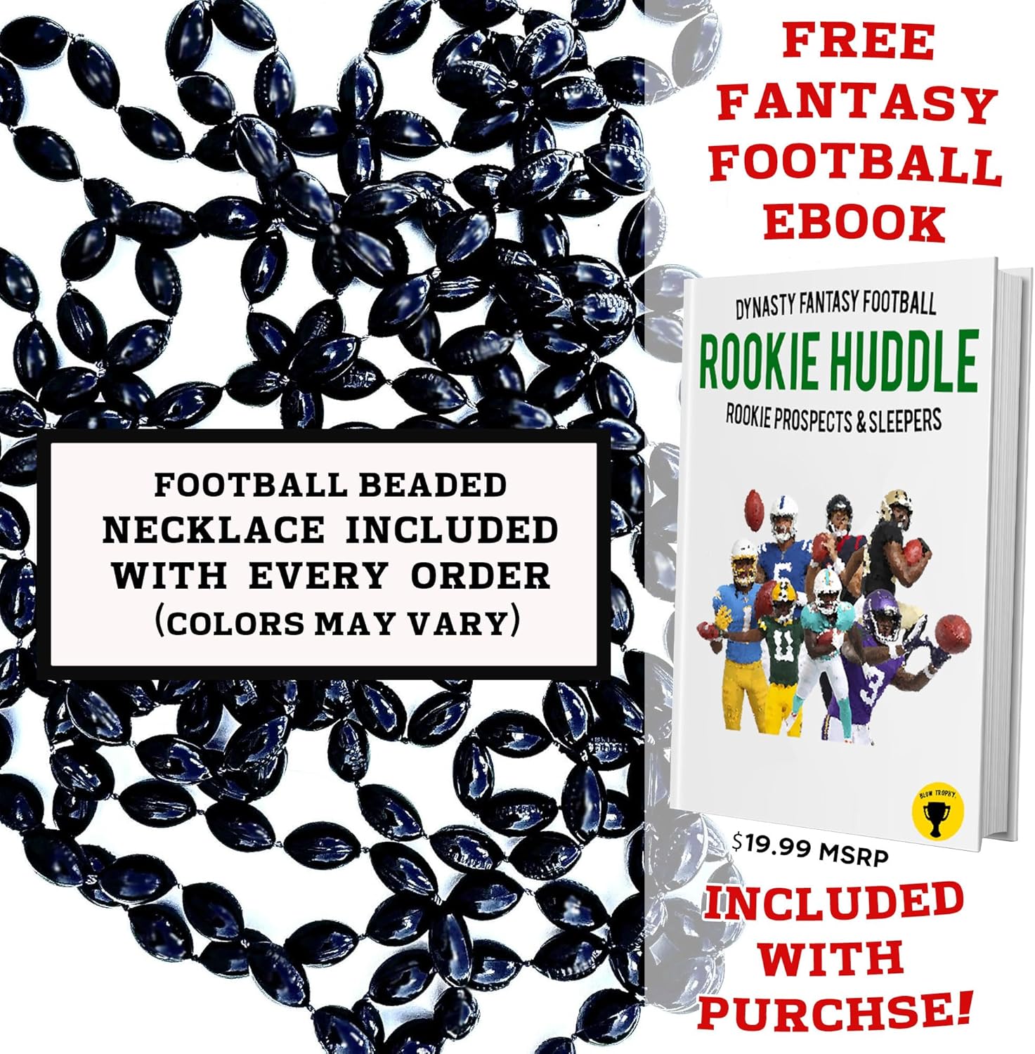 Every order includes a redemption code for the Blow Trophy Dynasty Fantasy Football Rookie Huddle eBook. It is the culmination of many months of obsessive fantasy football research and the only resource needed to dominate Dynasty Fantasy Football Rookie Drafts. The eBook includes over 150 player profiles, a Rookie Draft Board, QB, RB, WR, TE, and K analysis, Potential Sleeper Rookie Prospects, second-year Fantasy Football Sophomore Breakouts, and over 150 rankings of the incoming rookie class.