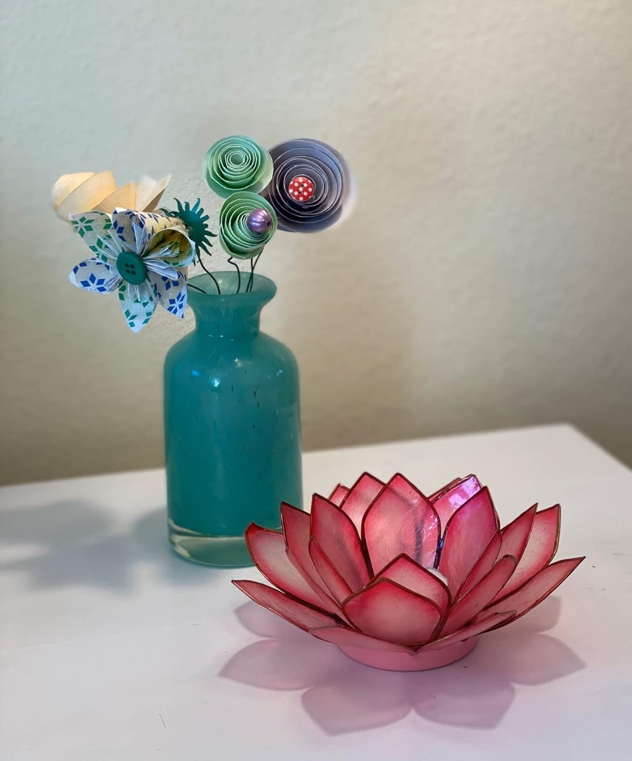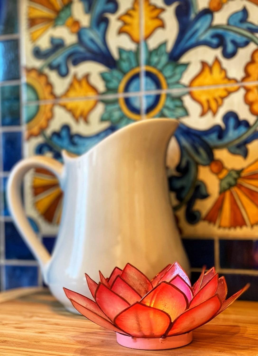 Enhance your living space with the captivating beauty of our Lotus Flower Candle Holder. This exquisite piece effortlessly combines the tranquility of a lotus flower with the functionality of a candle holder, creating a mesmerizing focal point for any room. Our small yet eye-catching tea light candle holder stands tall at 5″ from tip to tip, providing the perfect centerpiece for your lotus-themed decor. Whether you’re adorning your meditation space, yoga studio, or creating a soothing atmosphere in your home, the lotus decor adds a touch of tranquility to any setting. Searching for the perfect return gift? Look no further! Our Lotus Tea Light Holders make an ideal choice. Crafted to accommodate various candle types, including tea lights and votive candles, this versatile tealight holder offers endless possibilities for creating a warm and inviting ambiance. As part of our commitment to quality and sustainability, our tealight holders are meticulously handcrafted using eco-friendly materials. Each piece is made with love and care, ensuring that you receive a high-quality product that beautifully complements your lotus-inspired decor. Shop Om Gallery Lotus Tea Candle Holder now!