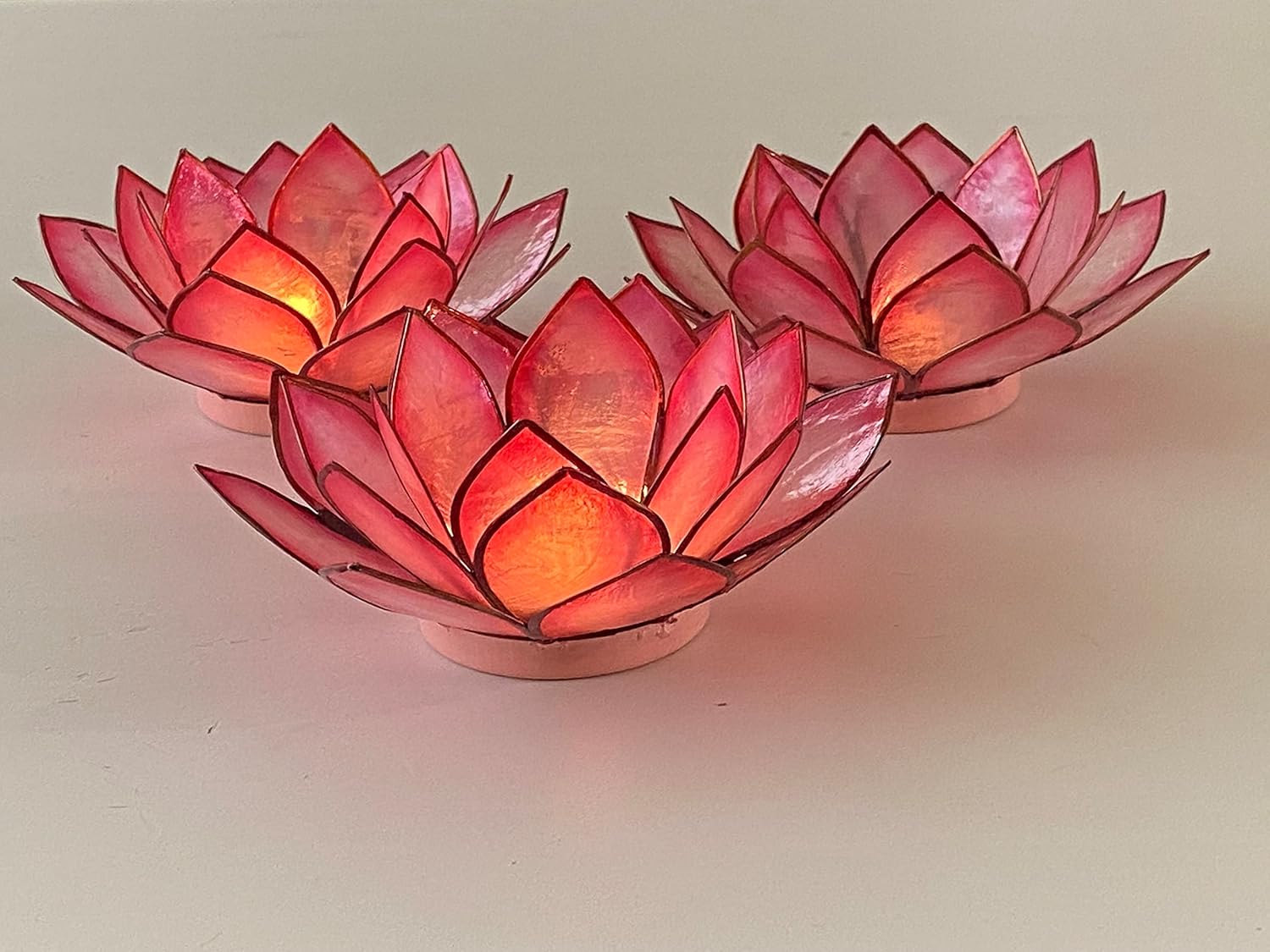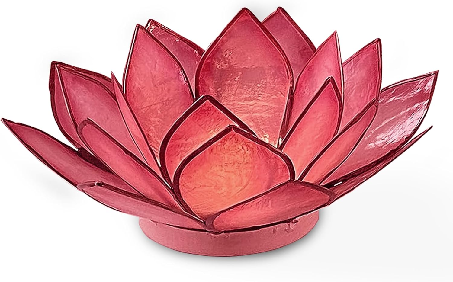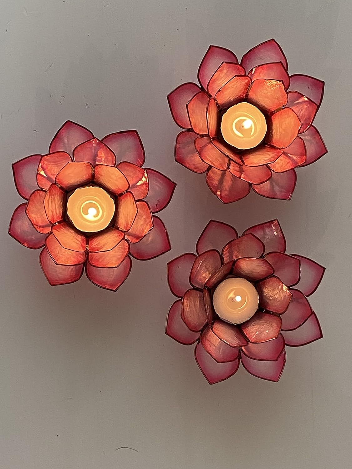 CAPTIVATING LOTUS DESIGN: Each lotus tealight candle holder features a stunning open lotus flower shape, showcasing three rings of translucent capiz shell petals for an elegant and eye-catching design